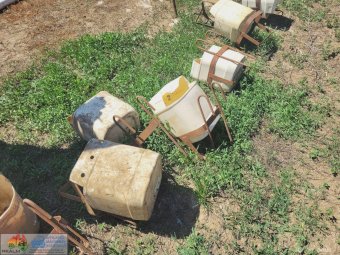 (1902) 13x Fence Mounted Feeder Frames to Suit Drench Drums