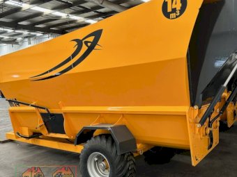 14 m3 Mixer Wagon (New Un-used) ~ European designed & manufactured ~ Electronic Scales ~ Hydraulic rear door ~ Side elevating conveyor & Ground drop door ~ End of model run-out, selling for about 1/2 RRP ~ Ideal for any feedlot or paddock troughs ~ Sheep, Cattle, Dairy