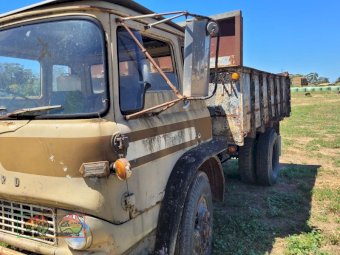 1968 TK Bedford Tip Truck ~ 11ft Tipping tray with Edbro Hoist ~ 6cyl Petrol engine ~ 4sp Gearbox ~ 2sp Diff ~ Good tyres all round including 1 new 9.00x20 ~ Truck hasn't been used for awhile, but was running & driving ok then. ~ NB: Contents in Tipper body are not included.