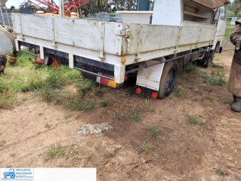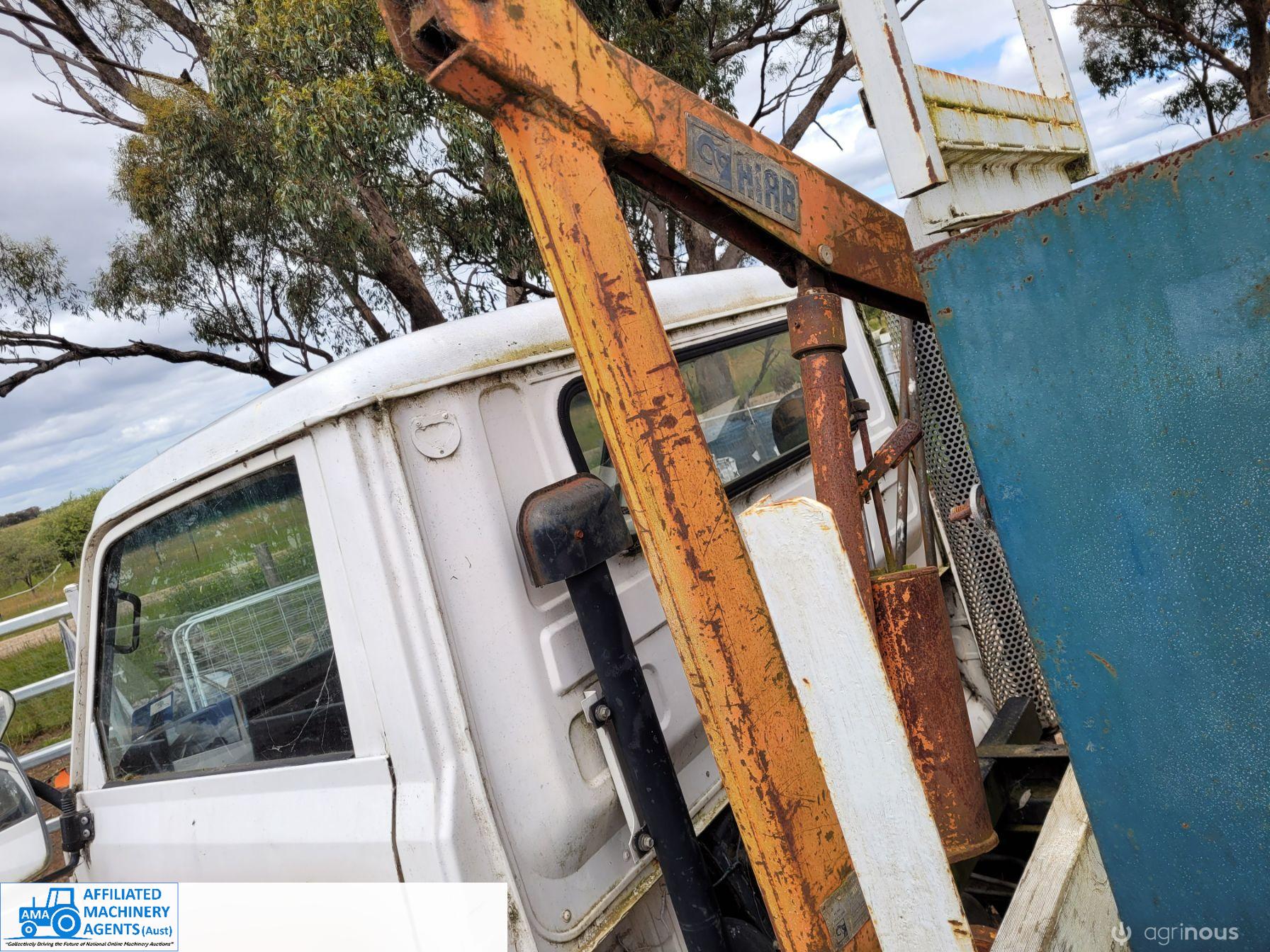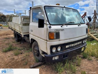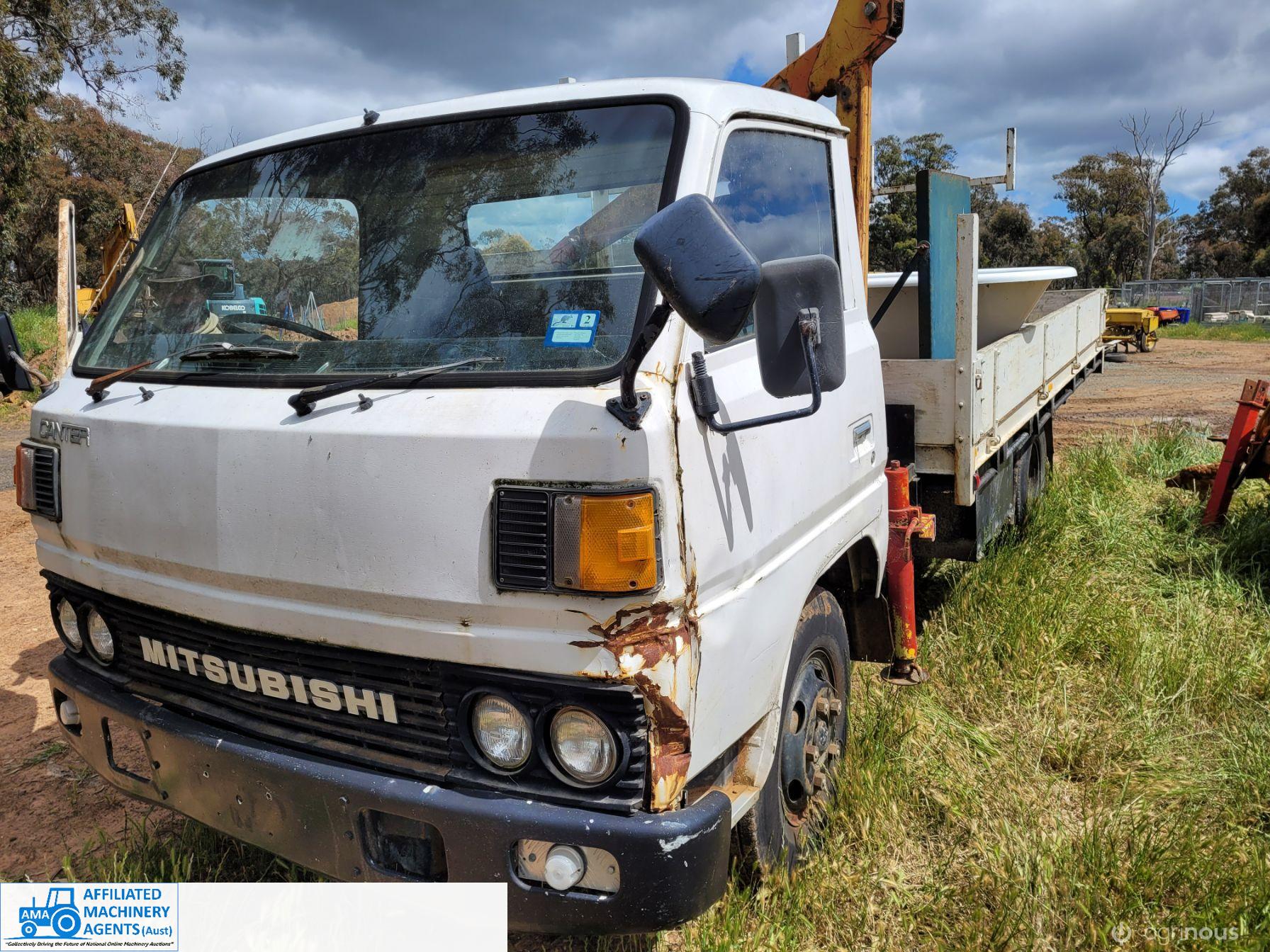 1985 Mitsubishi Canter Truck (Model FE214); 6 Ton GVM; 2.8 Ton Tare; 3.3ltr 4cyl diesel engine; 5 speed manual; Original 217,374 Kms; Solid checker plate tray 3,980mm x 2,135mm with solid timber drop sides; Manual operated Hiab Crane; 6 good tyres (approx 50%). Starts easily, runs & drives well, good clutch & brakes. Ideal station/farm truck, or suit Tradie once roadworthied & registered. Sold as-is un-registered.