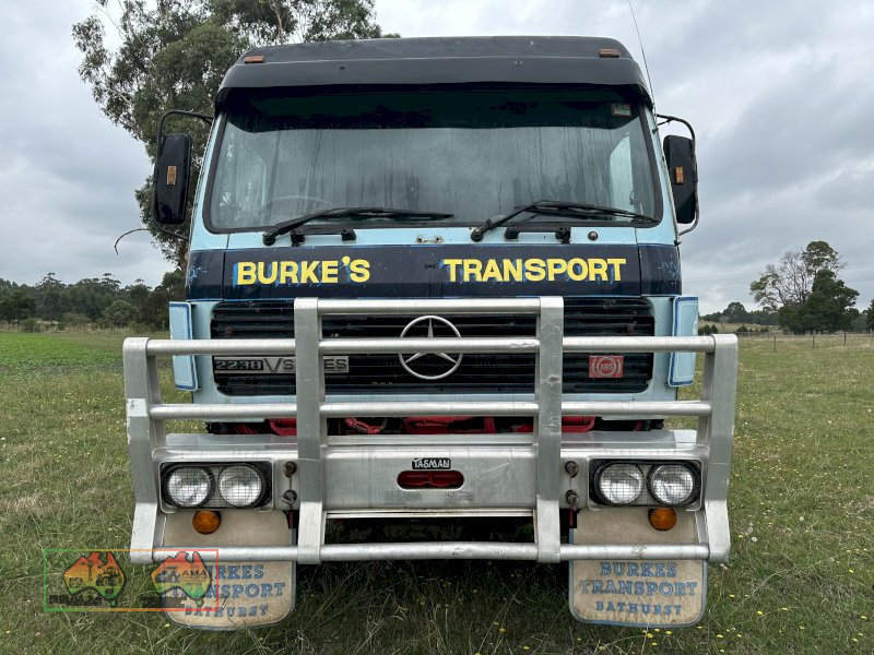 1987 Mercedes Benz 2238, 883,054 kms ( not sure if original) 380hp V8 Benz Engine, 13sp Roadranger Gearbox, Power Passenger Window, CD Player, Double Bunks, in very good condition for its age, no rust in cabin, steer tyres near new, drive tyres still have life in them, new front brake linings and drums, front wheel bearings regreased, rear brake linings about half worn. ~ (NB: 5% Buyers Premium + GST will be added to sale price of all Lots sold) ~ Contact AMA Agent: Michael Downie 0458 241 242