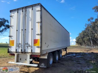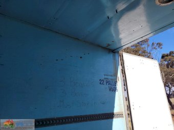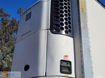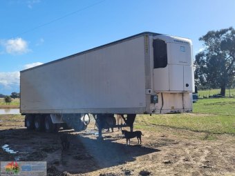 1995 Maxi-Cube "Meat Hanger" Freezer Van ~ Tri-axle on airbags ~ 44ft holds 22 pallets ~ Thermo-King Wisper refrig unit with 4cyl diesel mtr ~ The refrig unit has had recent overhaul ~ Meat hanging roof rails have been removed ~ 11R22.5 Spider rims ~ Tyres 25% ~ Sold un-reg no RWC ~ Cheap older trailer.