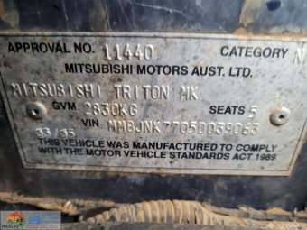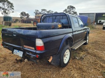 2005 Blue Triton 4x4 Dual Cab Ute ~ 4cyl 2.8 diesel ~ 5sp manual ~ 274,066 Kms ~ Alloy bullbar with driving lights ~ Wired for dual battery system ~ Sunraysia rims ~ Tyres approx 25% ~ Under bonnet compressor ~ Long range fuel tank in tub ~ Starts, runs & drives ~ Clutch, brakes & lights work ~ Ideal farm workhorse.