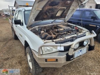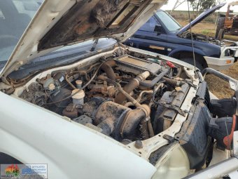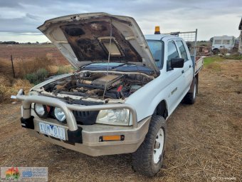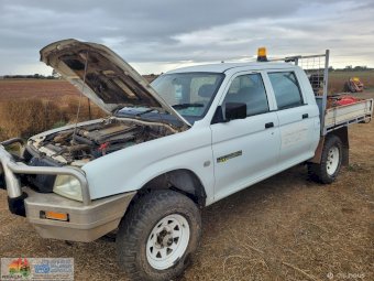 2005 White Triton 4x4 Tray Ute ~ 4cyl 2.8 diesel ~ 5sp manual ~ 197,885 Kms ~ Alloy bullbar with driving lights ~ Wired for dual battery system ~ Flashing light ~ Tyres approx 40% ~ Starts, runs & drives ~ Clutch, brakes & lights work ~ Ideal farm workhorse.
