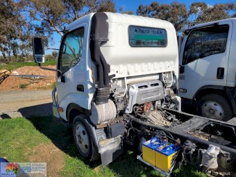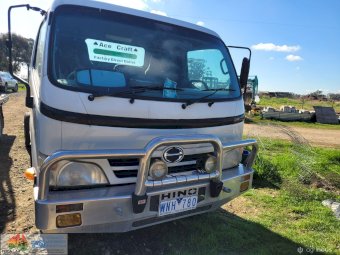 2008 Hino 300C Cab-Chassis Truck ~ Wide cab ~ Long wheel base 3.5m ~ 4cyl Turbo diesel 165Hp ~ 5 Speed manual ~ Low Kms (140,000) ~ Good alloy bull bar & driving lights ~ Near new tyres ~ One Owner from new ~ Good service history ~ Previously had 4.8m x 2.4m Alloy tray ~ Missing tail light assembly (went with tray) ~ Tidy interior, good seats (always had seat covers) ~ Starts runs & drives well, good clutch & brakes ~ New batteries, filtres & spares. ~ Previous Vic Rego, no RWC.
