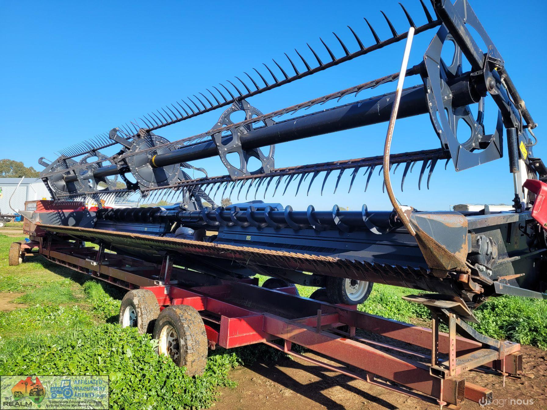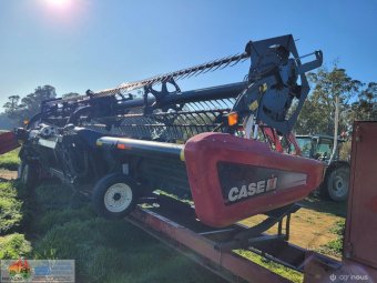 Case 2162-35 Flexi Draper Front ~ 35ft ~ Manufactured by MacDon ~ Good rubber belts ~ Cross feed auger ~ Exc. quality, hardly used ~ Minimal to no wear on skids ~ Solid well engineered comb trailer ~ Originally made for 39ft front, has been cut back (extra length included) ~ Ball race turntable ~ 15" Toyota wheels & tyres ~ Double sided lock-up tool box, for oils, parts & sundry tools. ~ This would suit a NEW BUYER's requirements.