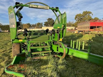 Twin film, 48,785 bales, will wrap up to a 4’ 9” bale, handles heavy bales with ease, auto load and eject, 6 wrap storage holders, had knife accumulator valves updated to latest version, very easy to operate in cab controller, wrapper is in great working condition, ~ (NB: 5% Buyers Premium + GST will be added to sale price of all Lots sold) ~ Contact AMA Agent: Michael Downie 0458 241 242