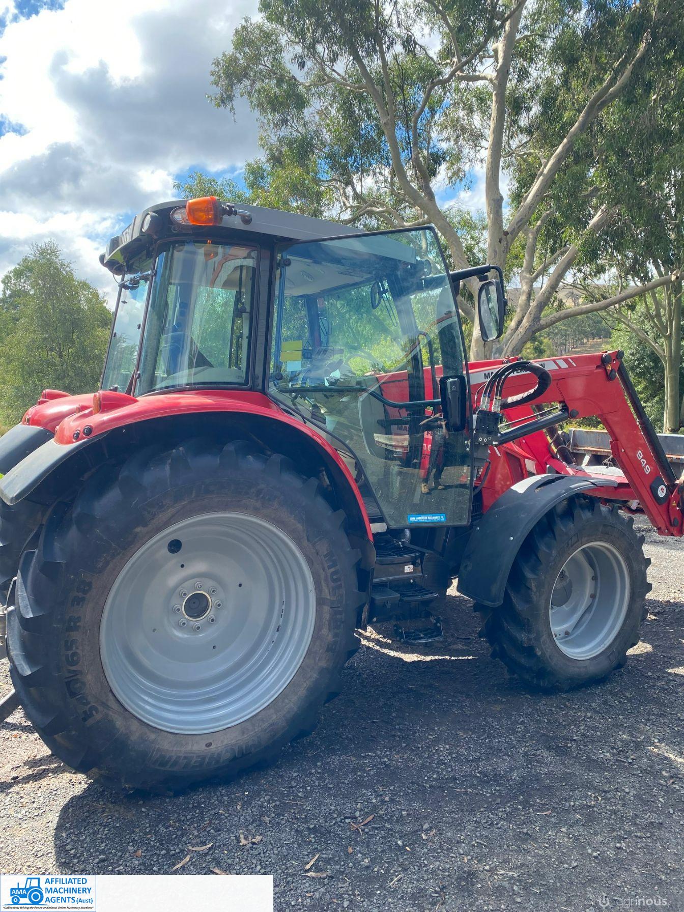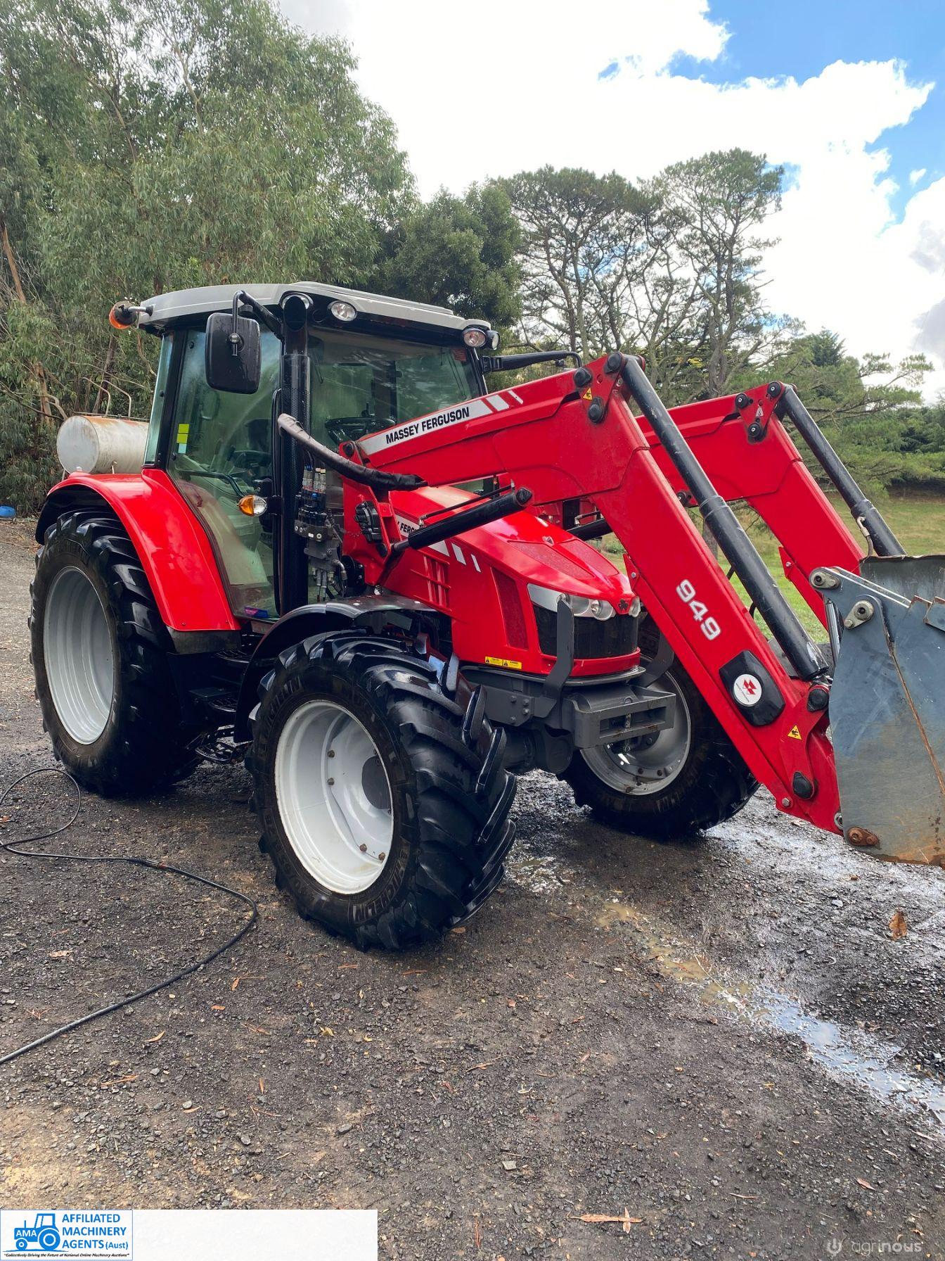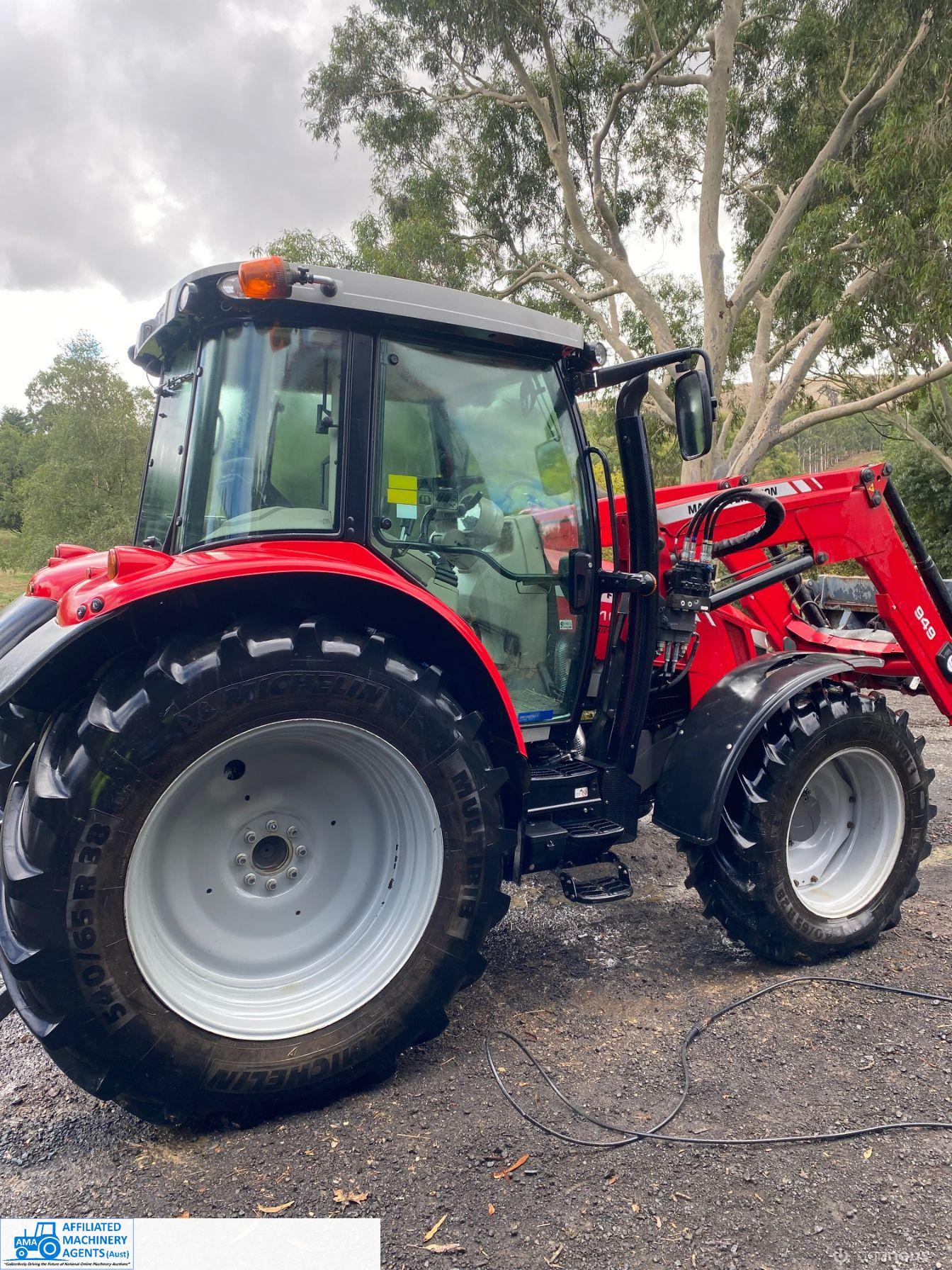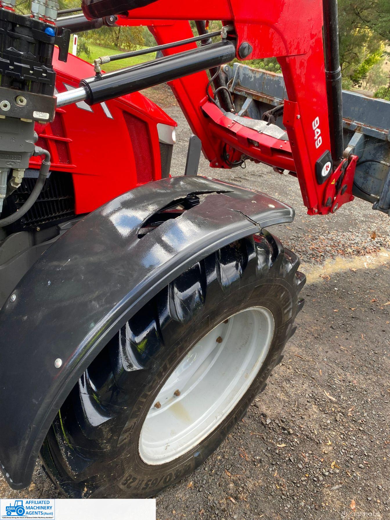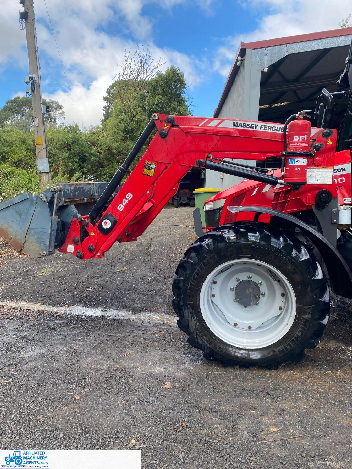 2017 MF-5610 Tractor with MF-949 FEL ~ 3.3ltr 100Hp diesel engine ~ This tractor presents extremely well being a 1 Owner machine with only 1,080 Hrs ~ Always serviced & maintained by the local MF Dealership ~ Tyres are good with plenty of tread ~ This tractor is near faultless with the only known damage being a hole in the front plastic wheel guard (see photo) ~ Suit a NEW BUYER
