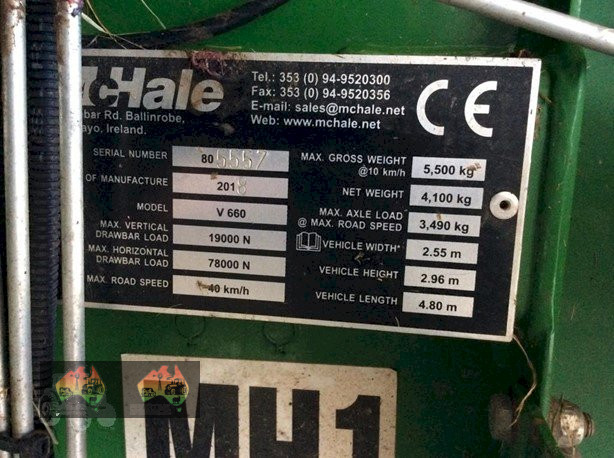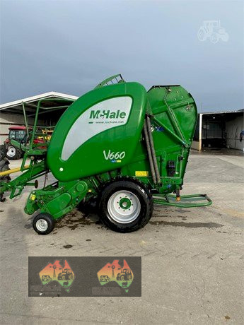 McHale V660 round baler, c/w nrt wrap, 2m pick up, double drive system, 16 knives, drop floor, 2.4-5’6”” bale size, fully w/shop checked & ready to go, 46,000 bales, good condition, stk no 200792, located Trafalgar, Vic