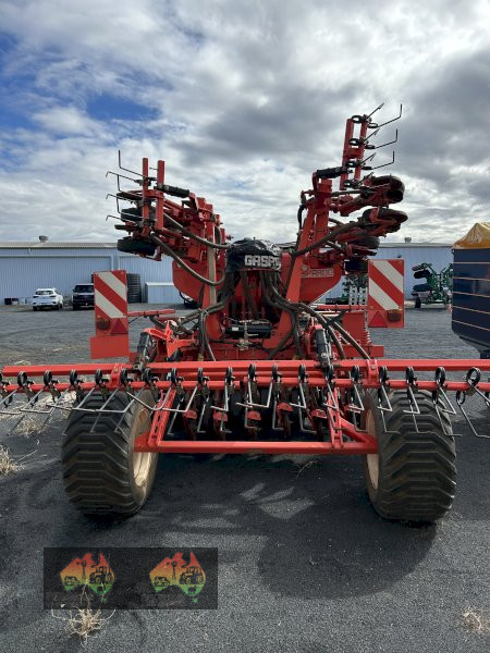 Gaspardo Gigante Pressure 4.0m , 3pl single disc seeder, 6”” spacings with mounted press wheels, in-frame 2 bin mounted hopper, 2 point swivel hitch, high flotation tyres, mounted finger harrows, ISO compatible, v/ good condition, located Toowoomba, Qld