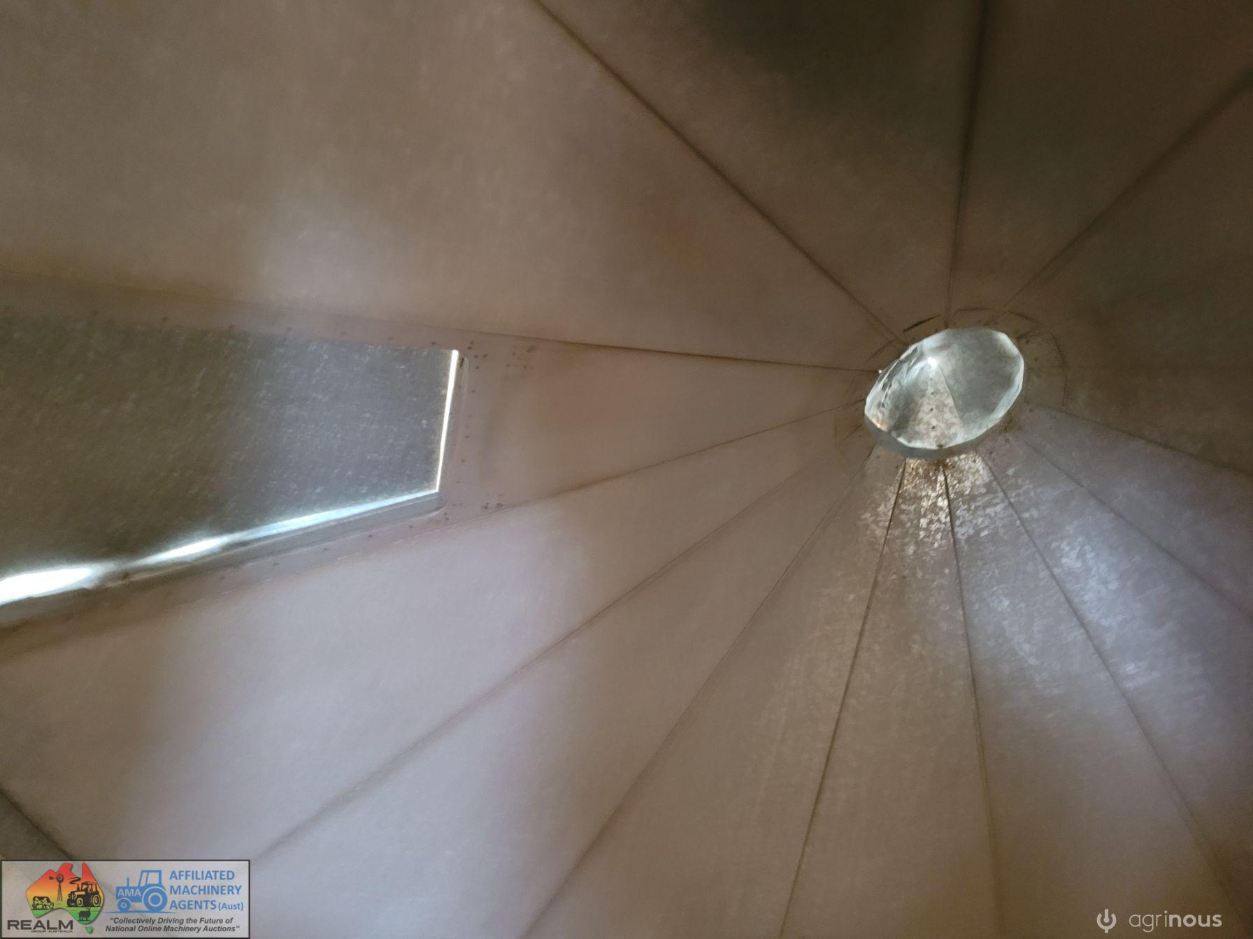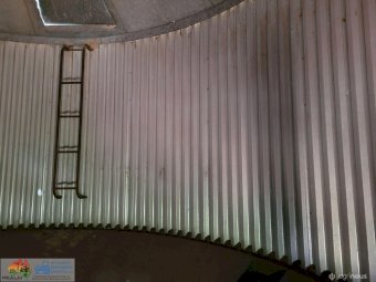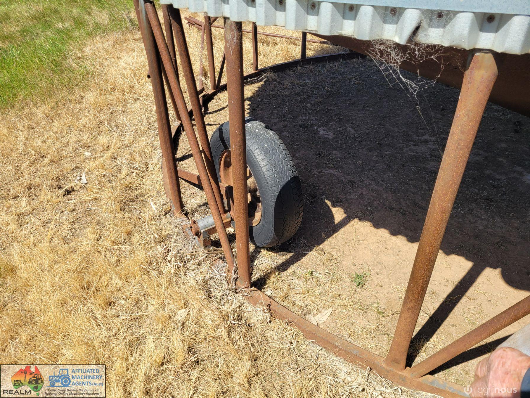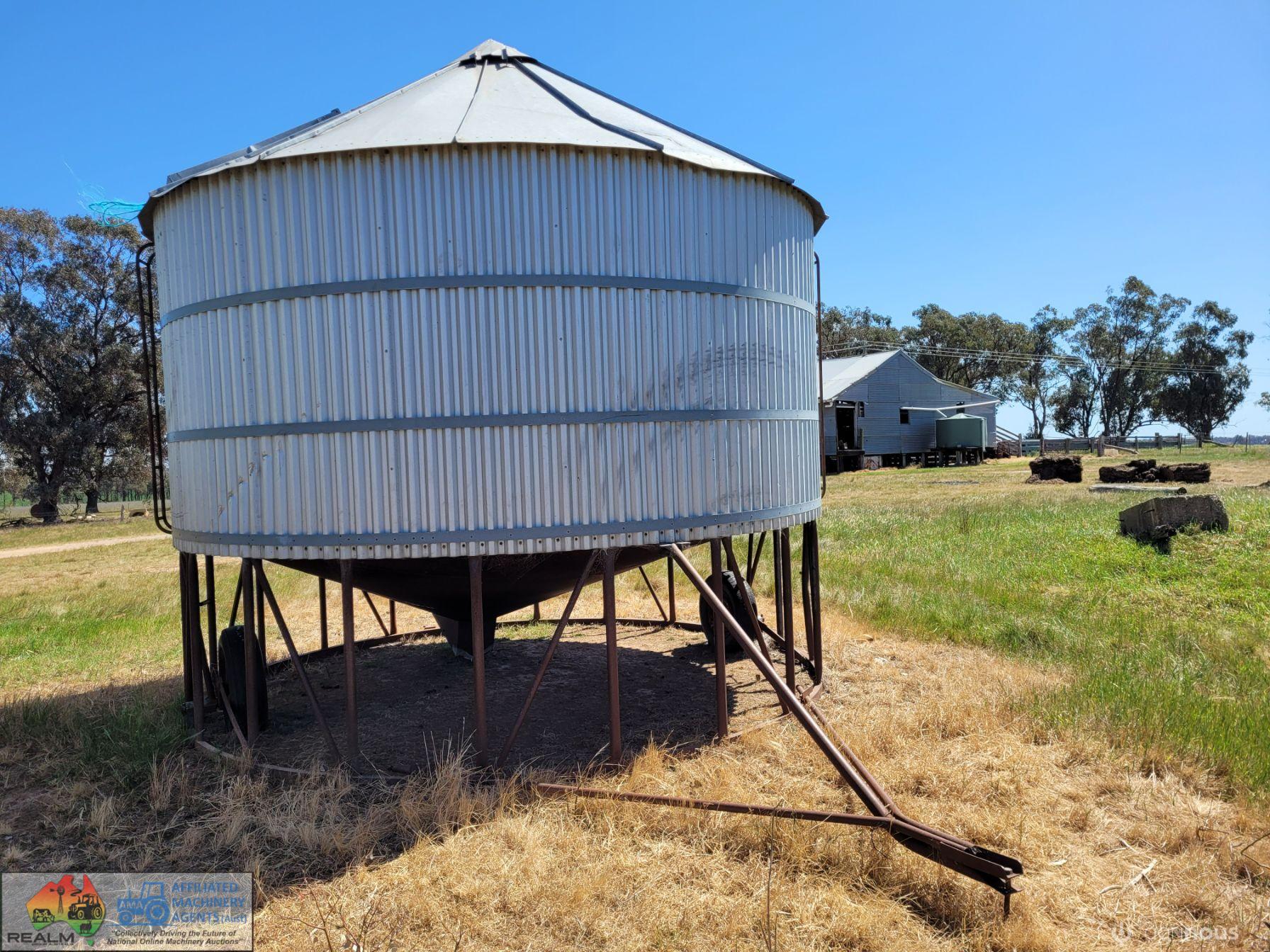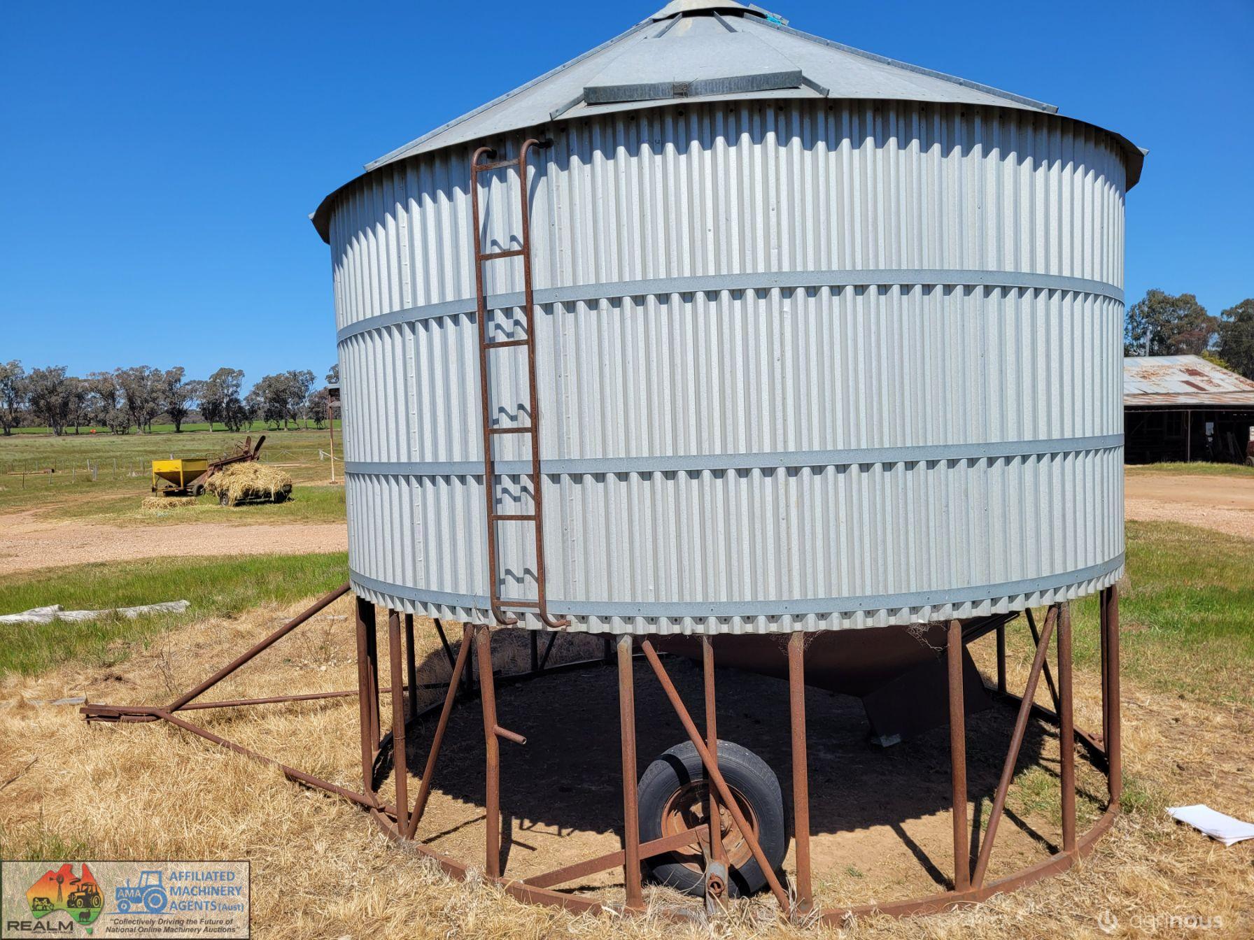 Approx. 24 ton Field Bin ~ Good solid condition ~ No signs of rust ~ Slight damage to roof, easily repairable ~ Good wheels & tyres.