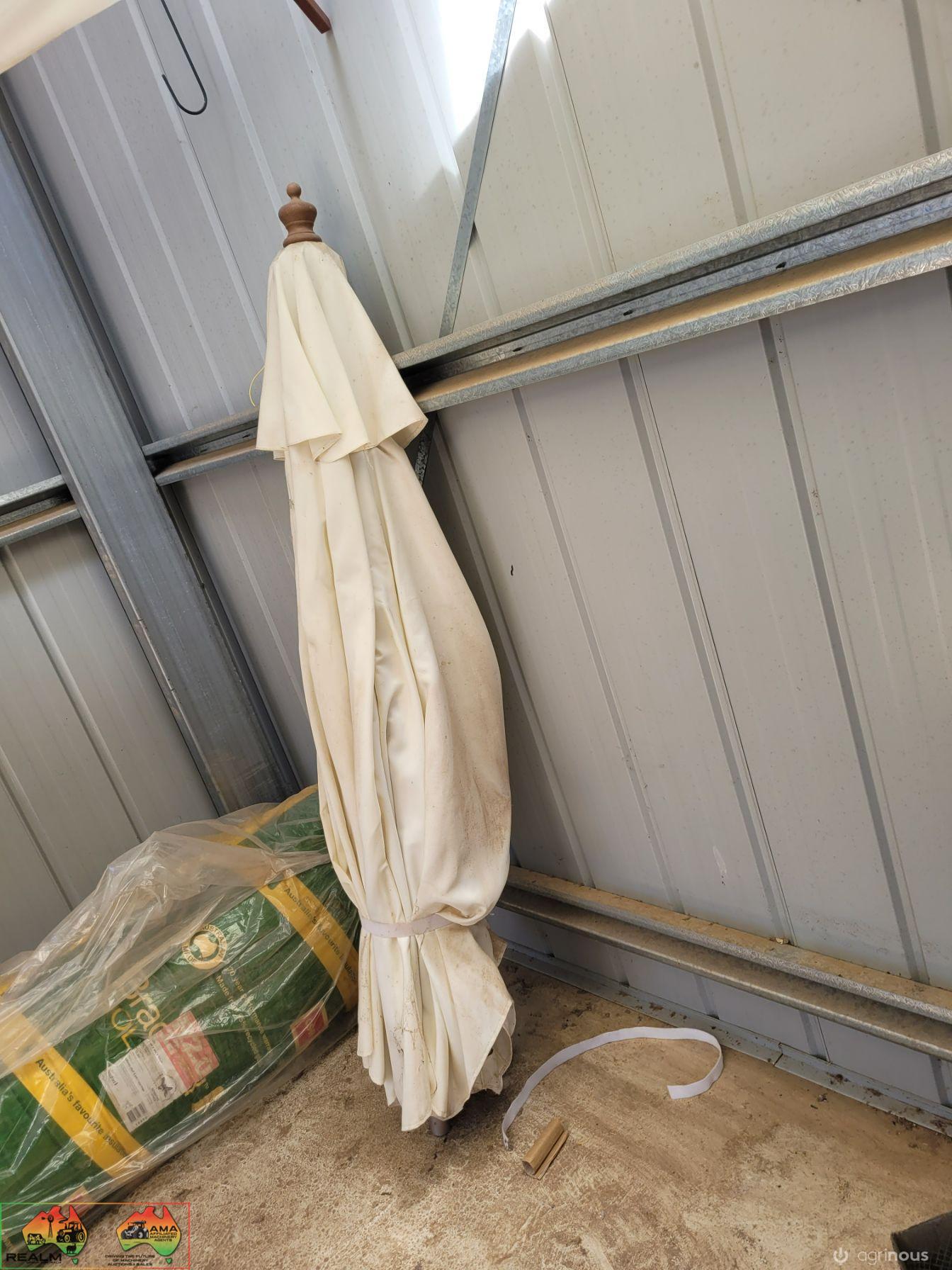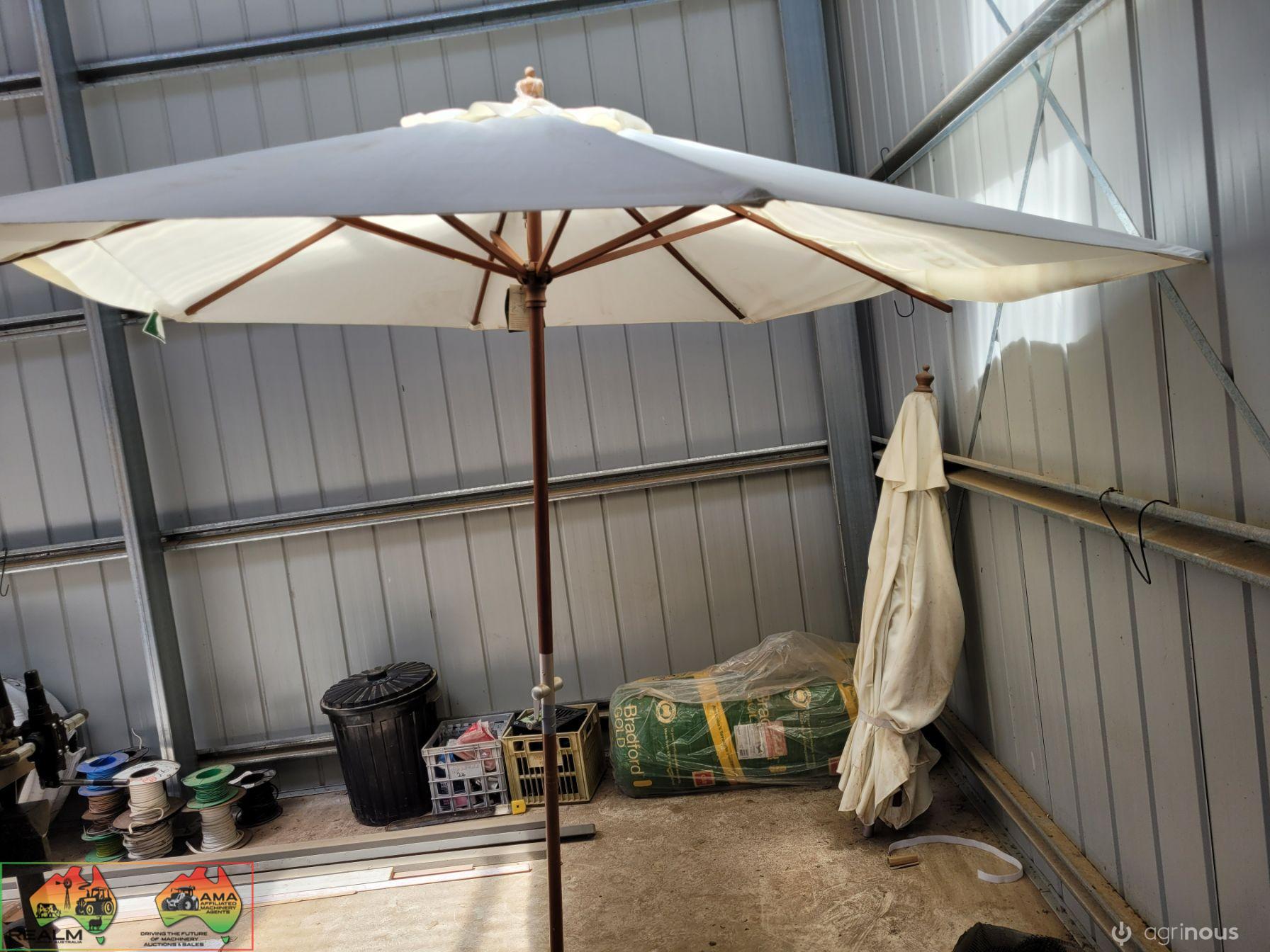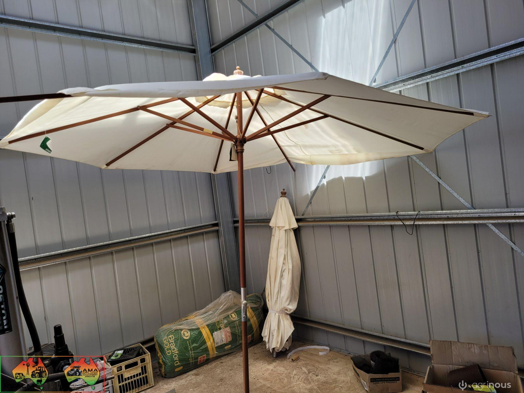 2x 2.9m Outdoor Sun Umbrellas (Near New) ~ Note: 1 umbrella is missing bottom half of timber pole