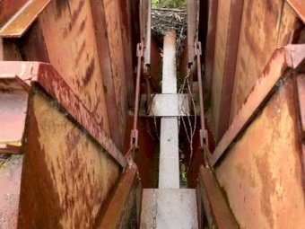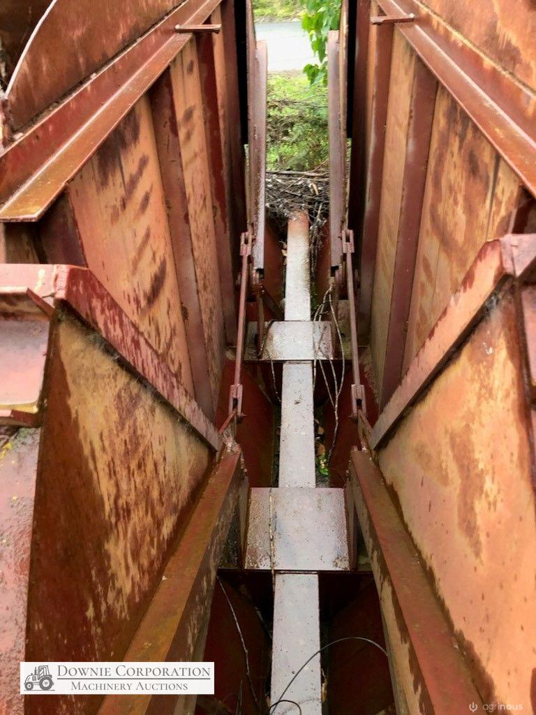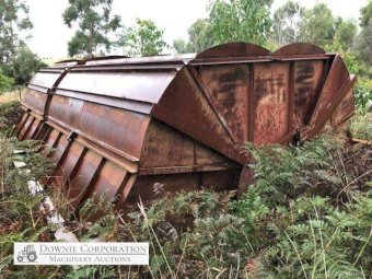 2x H/Duty Steel Dumping Hoppers on solid steel frame 4m x 8m, has twin canter lever "Clam Shell" opening doors (photos show it up-side down). Previously designed & purpose built for woodchip storage & quick dump into semi-trailer/truck. This item has never been used, it could be set-up for bulk firewood, sawdust or woodchips from a sawmill.