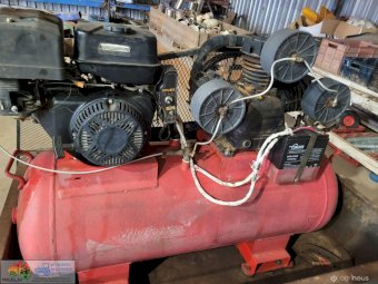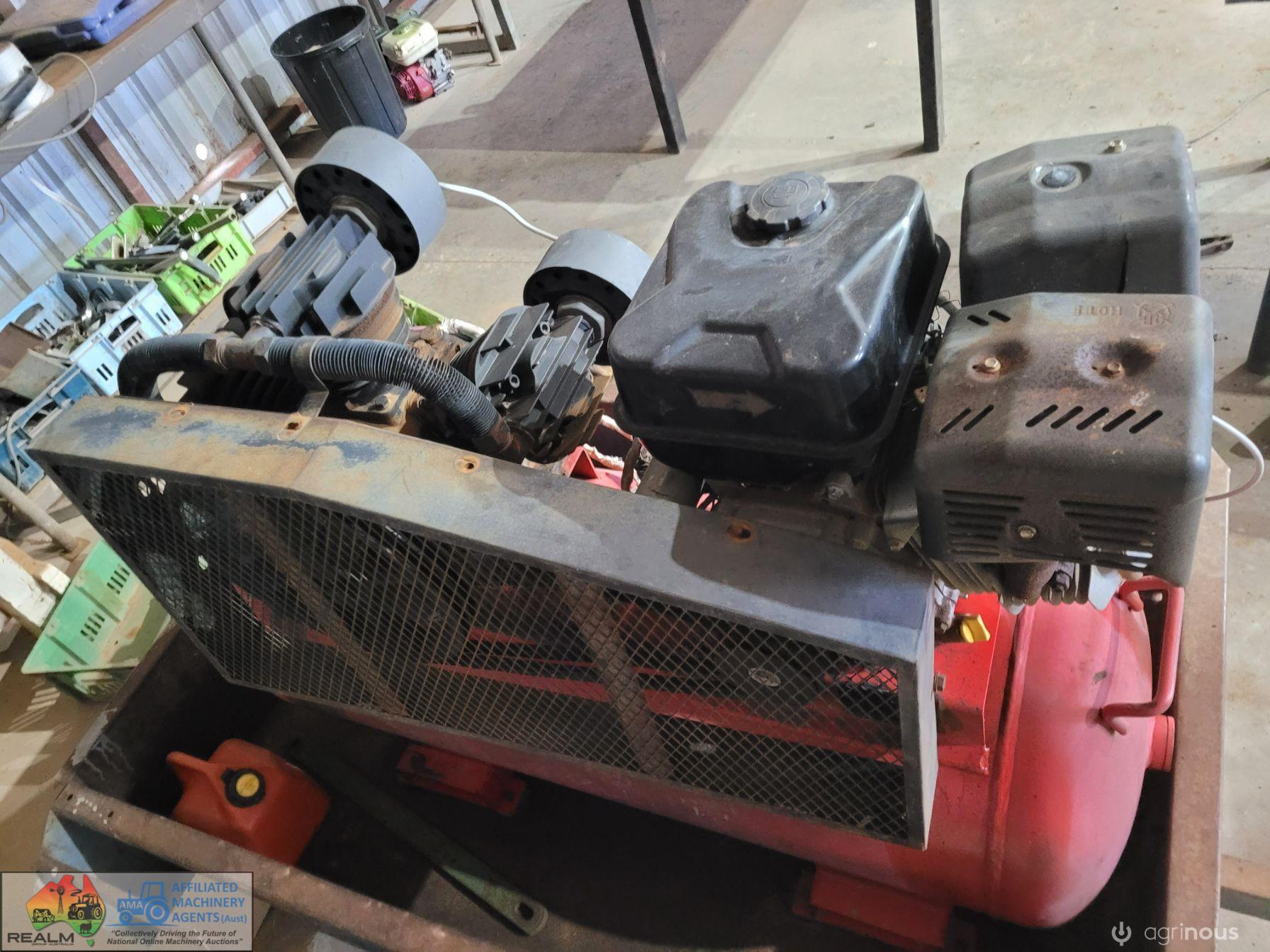 3cyl Industrial Compressor ~ electric start petrol engine ~ Engine starts & runs well ~ Good battery ~ Compressor will only generate 100 psi (may need some repair work) ~ Trailer not included.