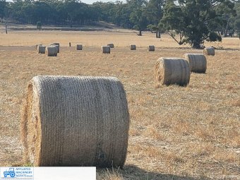 52 Rolls of Pasture Hay ~ Cut from new pasture of ryegrass, phalaris, cocksfoot & clover ~ Current season 5x4 rolls cut, raked, inoculated & baled without any moisture damage ~ Feed Test attached ~ Good quality heavy bales ~ (NB: Sold per bale ~ Quantity can vary to suit load size) ~ Loaded by Seller