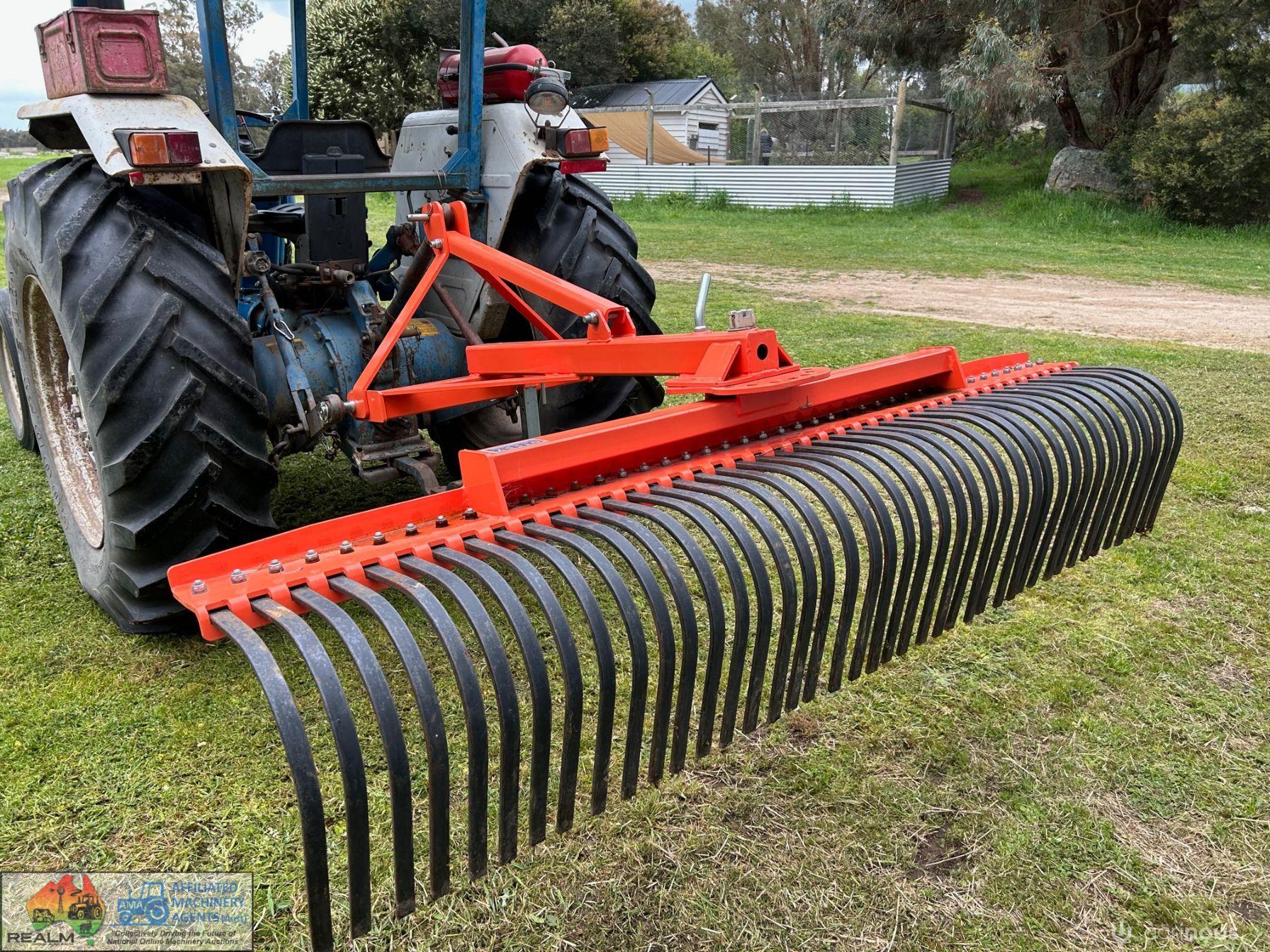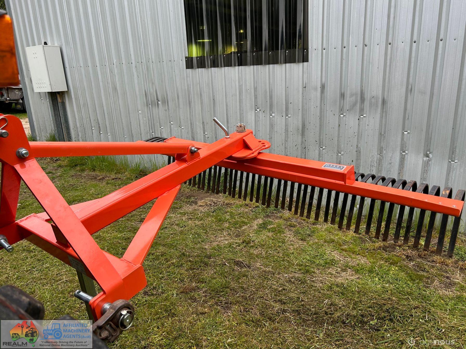 Dissy 3PL adjustable Stick Rake. 2.1metre (7ft) ~ HD tynes ~ Had very little use. ~ Comes with Euro hitch coupling & brackets for use as FEL pusher rake, ~ Presents near new condition