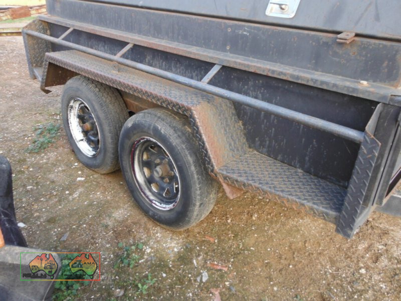 8×5 Tandem Tradesman trailer with ladder rack ~ Gas struts on doors ~ Good tires ~ no vin ~ no rego ~ selling as is ~ A nice well built trailer.