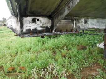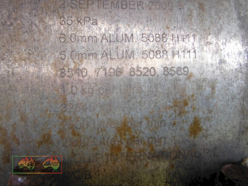 truck fire melted some of the sub frame and turntable, tank appears to be solid, may need some hoses repaired or replaced. Suitable as a static tank, with 4 compartments. 8540,-7196,-8520,-8589 Lts