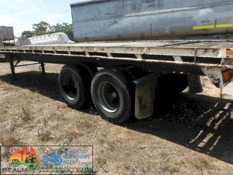 Barker Bogie Flat top trailer ~ Spring suspension ~ Timber floor ~ A fairly straight trailer ~ Ideal farm Hay/Grouper trailer