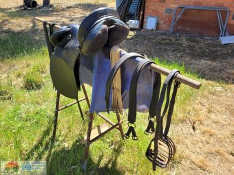 Black 16" Stockmans Saddle ~ Always well maintained ~ Good supple leather ~ Includes; Bridle, Stirrups, Rug, Rack (the lot as per photos)