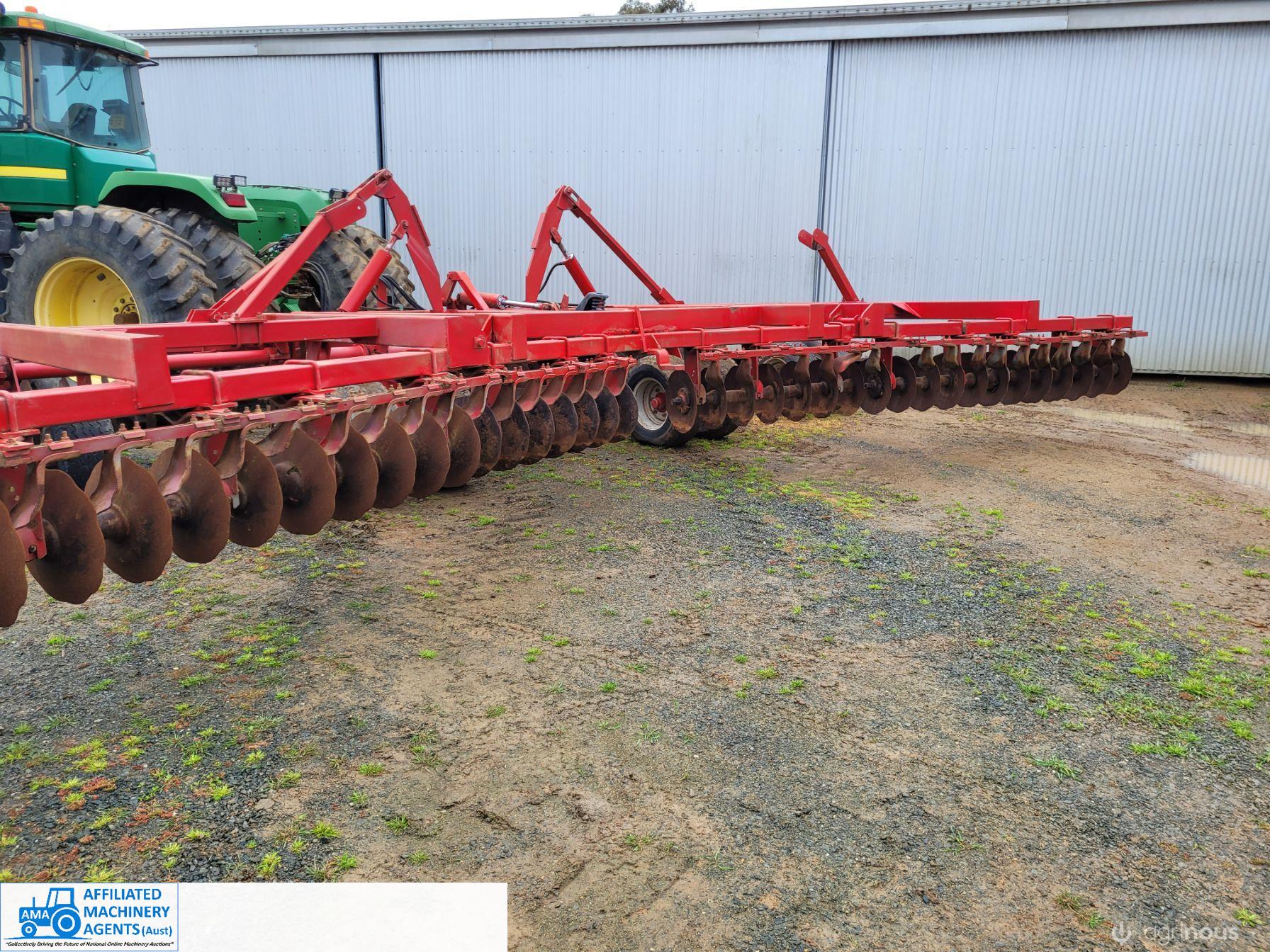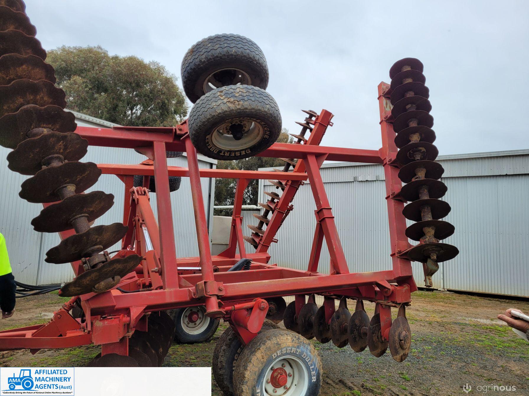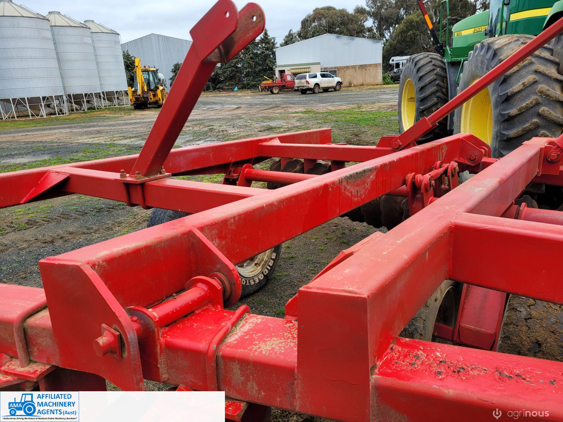 Bush-Hog 78 plate offset Discs, 9m cut, gang bearings seem good, Good solid H/duty frame. Wheel hubs have been upgraded to 4ton specs. All hyd. rams are good, no oil leaks. Front discs 50%, Rear 20%.