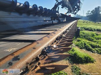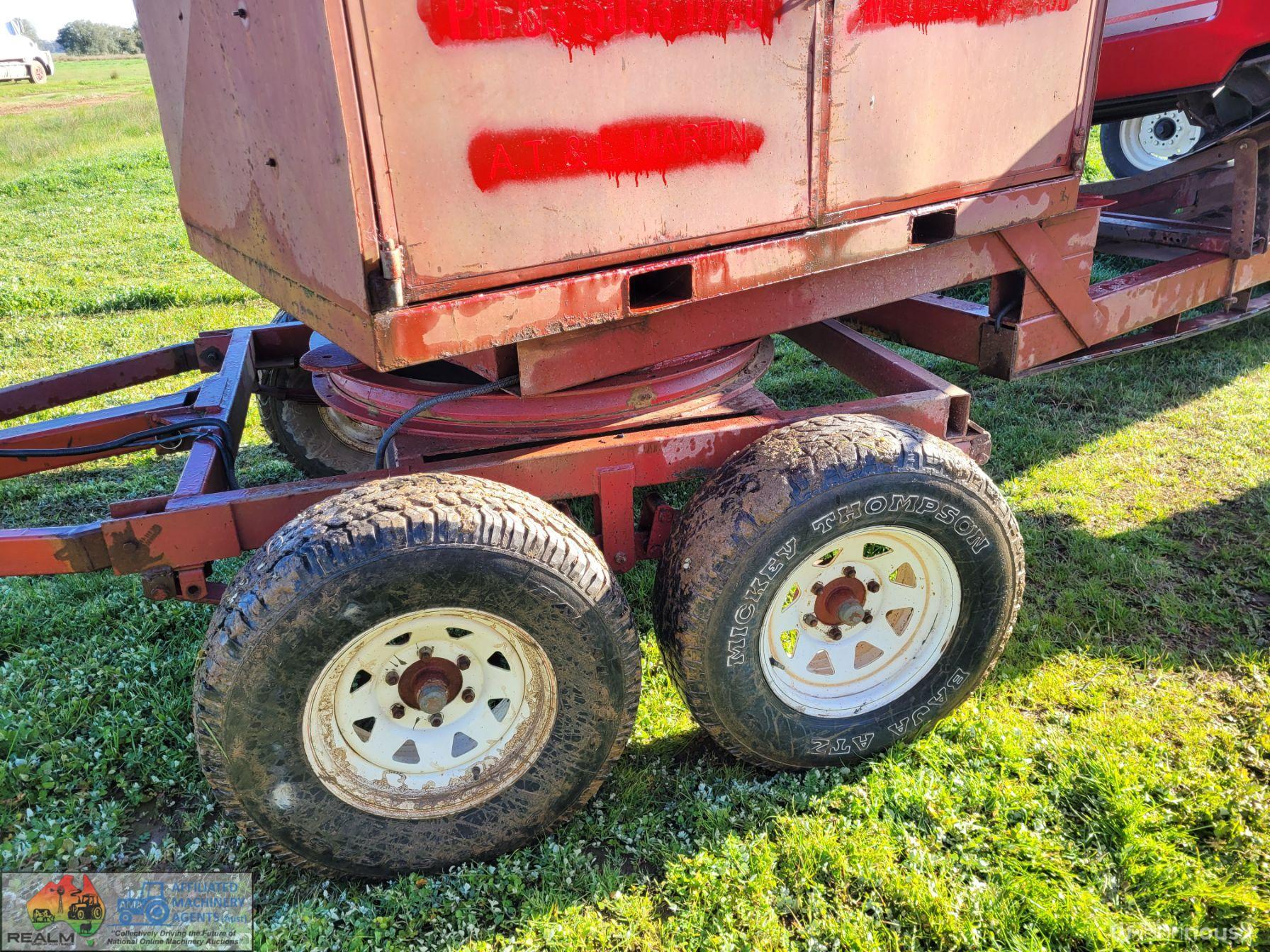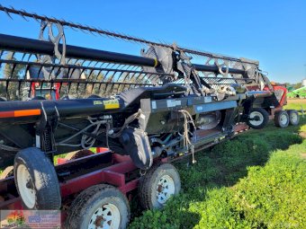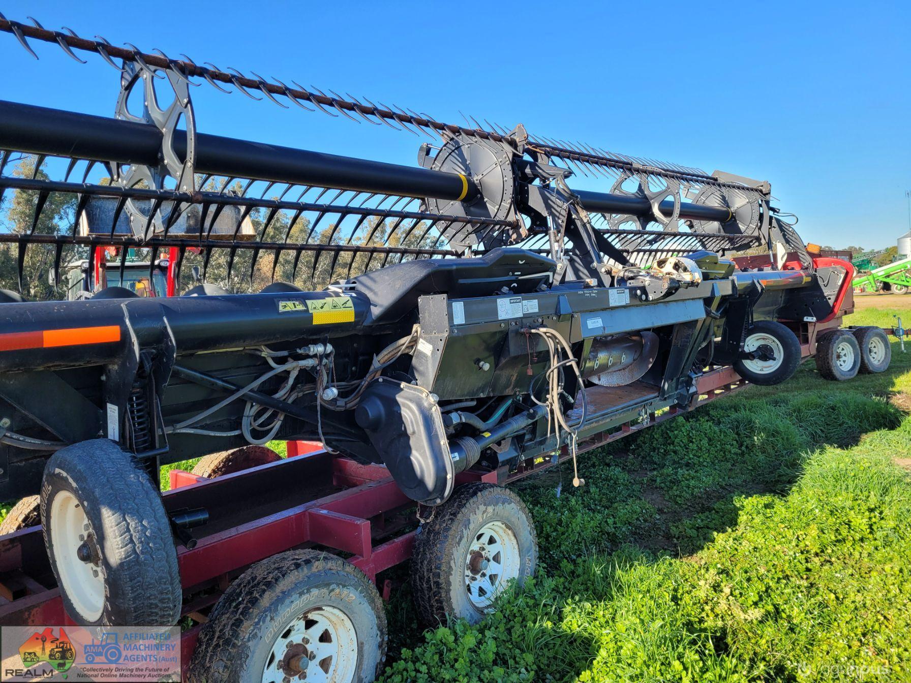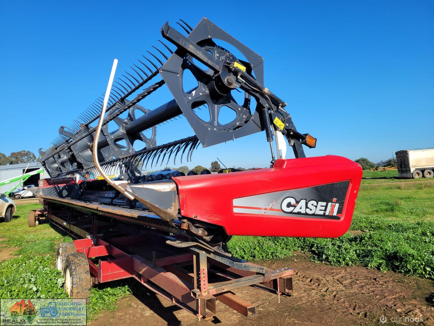 Case 2162-35 Flexi Draper Front ~ 35ft ~ Manufactured by MacDon ~ Good rubber belts ~ Cross feed auger ~ Exc. quality, hardly used ~ Minimal to no wear on skids ~ Solid well engineered comb trailer ~ Originally made for 39ft front, has been cut back (extra length included) ~ Ball race turntable ~ 15" Toyota wheels & tyres ~ Double sided lock-up tool box, for oils, parts & sundry tools. ~ This would suit a NEW BUYER's requirements.