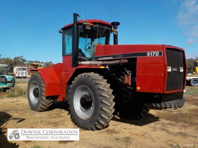 Case-IH 9170 4WD Tractor; 335HP; 12speed power shift; power steering rams have been resealed. It come with duels. Believed to be a one owner tractor. Has had a dint in front grille. Presented in original paint with minor touch ups. 9,210 hours; Tyres 40% tread no cracks; Late 80s-90 model; Starts, runs & drives. A good tidy tractor for its age. CHEAP HORSEPOWER.
