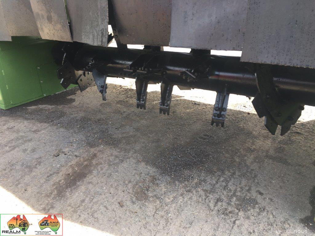 Can hydraulically fold behind tractor for transport.