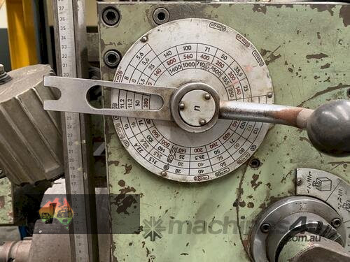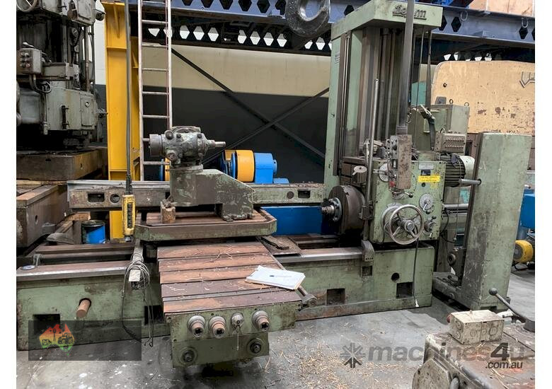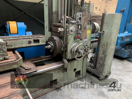 80mm, facing head 500 dia, table size 1000 x 1100 with vertical head, outer table supports and end stay. The electrical box needs work done.