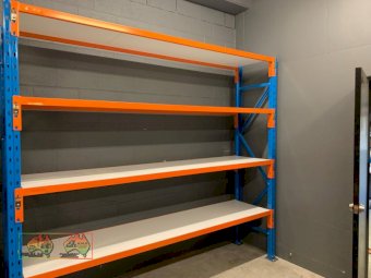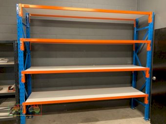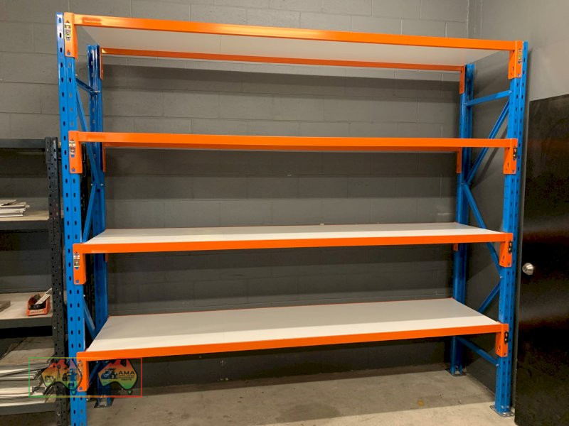 Dexion Double Bay, 4 Shelf Pallet Racking ~ 3x Blue uprights (2.4m x 838mm) ~ 16x Shelf Beams (2.59m) ~ 8x Melamine Shelves (2.59m x 838mm) ~ 6x steel footplates for frames ~ 8x Galv. mid shelf support brackets ~ NB: Successful Bidder will have the option to buy more, subject to availability ~ (Note: First 2 photos are stock images only) ~ Payment DUE within 24 Hrs of Invoice ~ Sold as-is, prior inspection recommended. ~ NB: This item will have 10% GST added. ~ A Buyers Premium of 5% (+GST) applies to all Lots. ~ If you wish to enquire further about our listings, please call Michael on 0458 241 242 or email michaeld@amasales.com.au