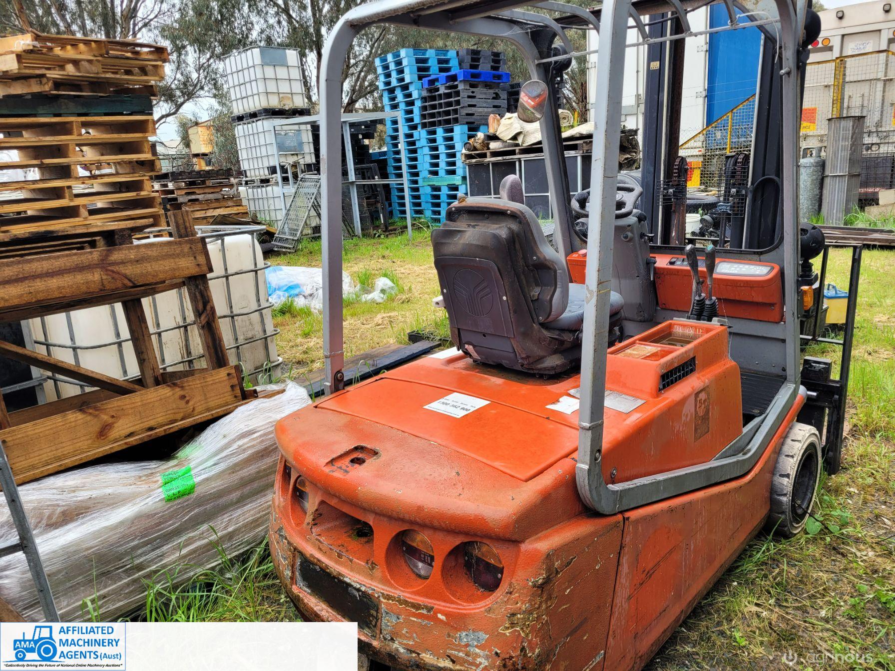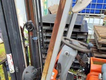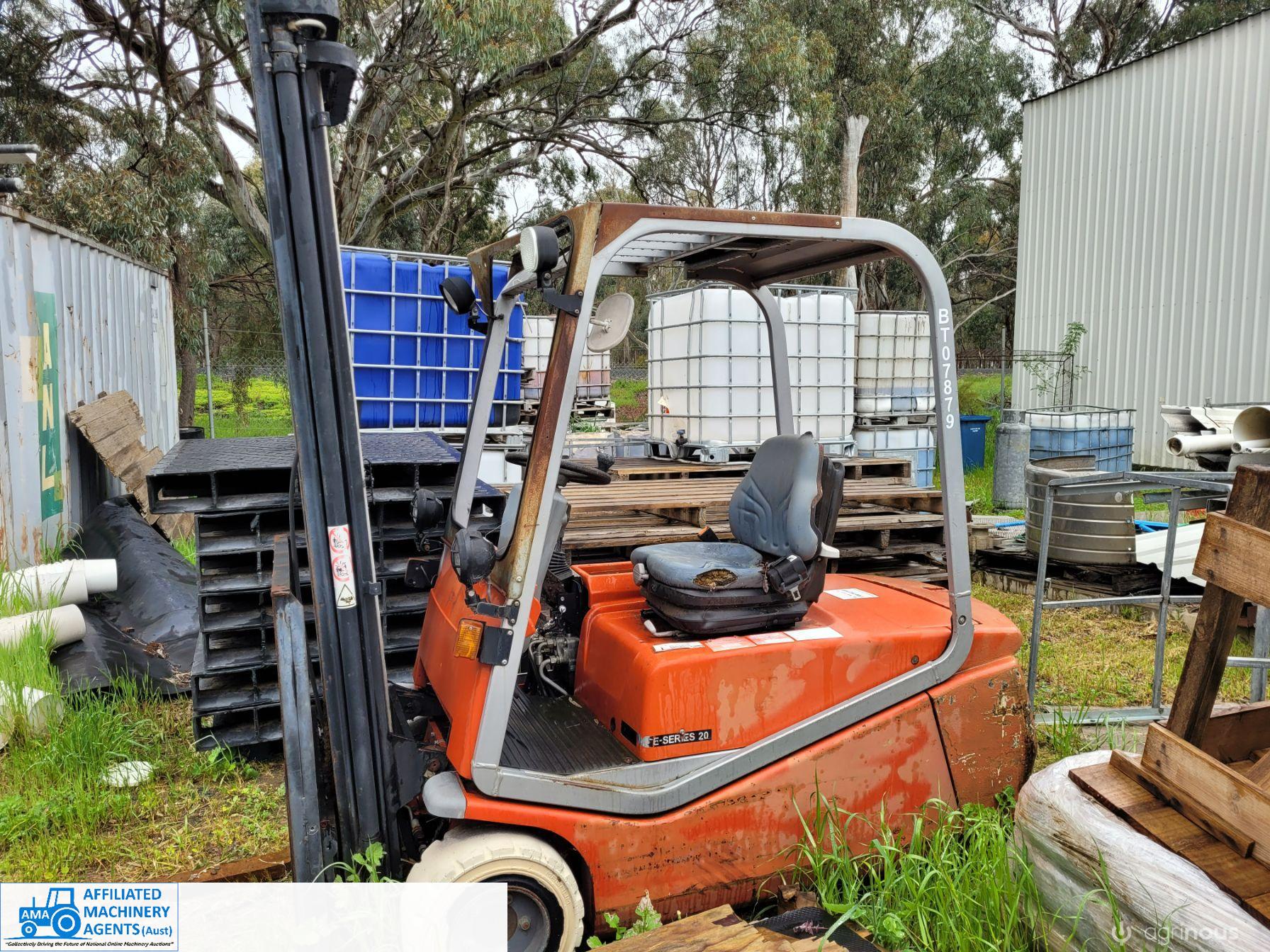 Electric Forklift (needs new batteries), in good working condition. 1.1m extra long Pallet forks. Tower lift 3.7m, Hyd. sideshift. Charger included.