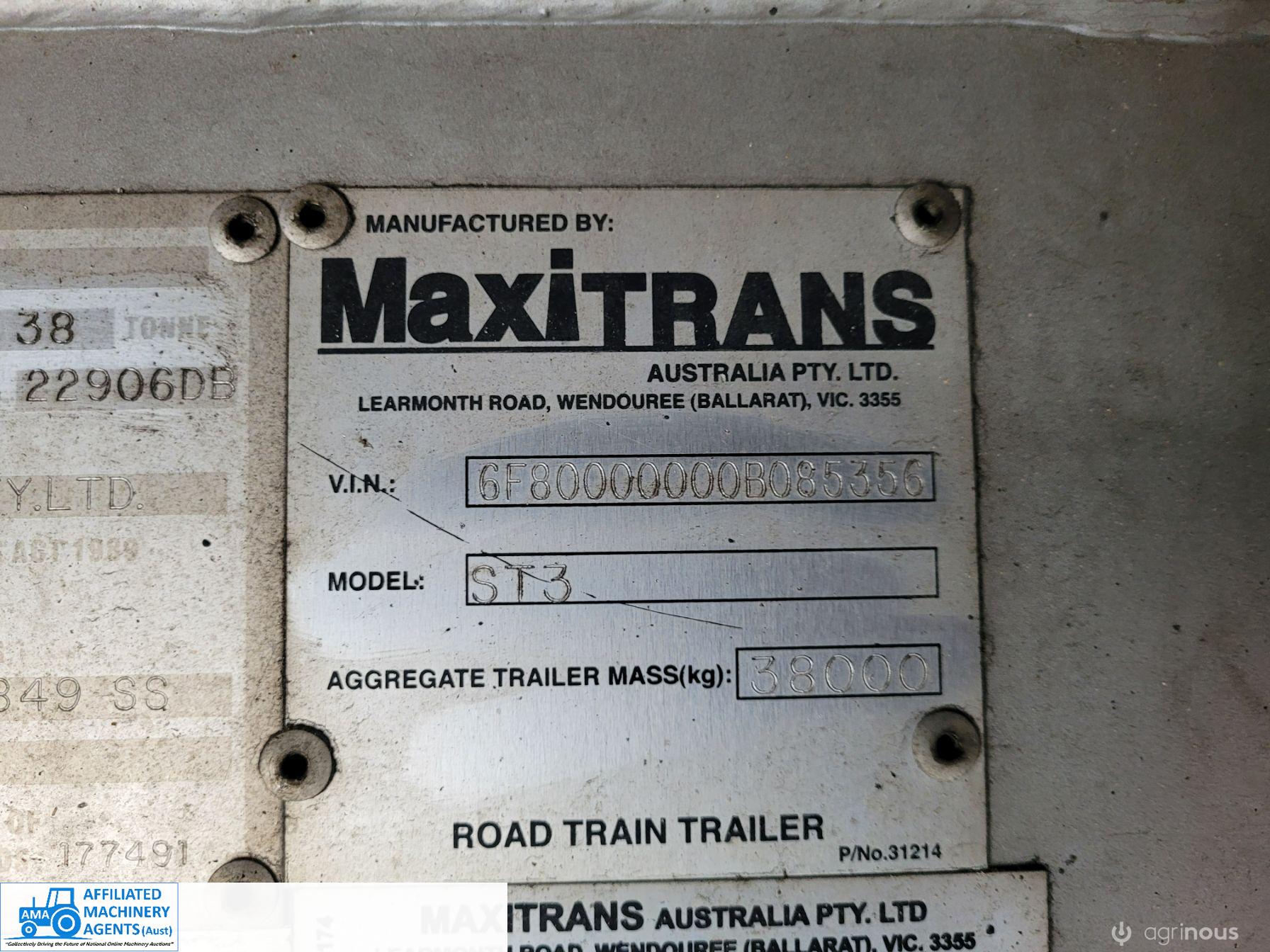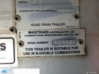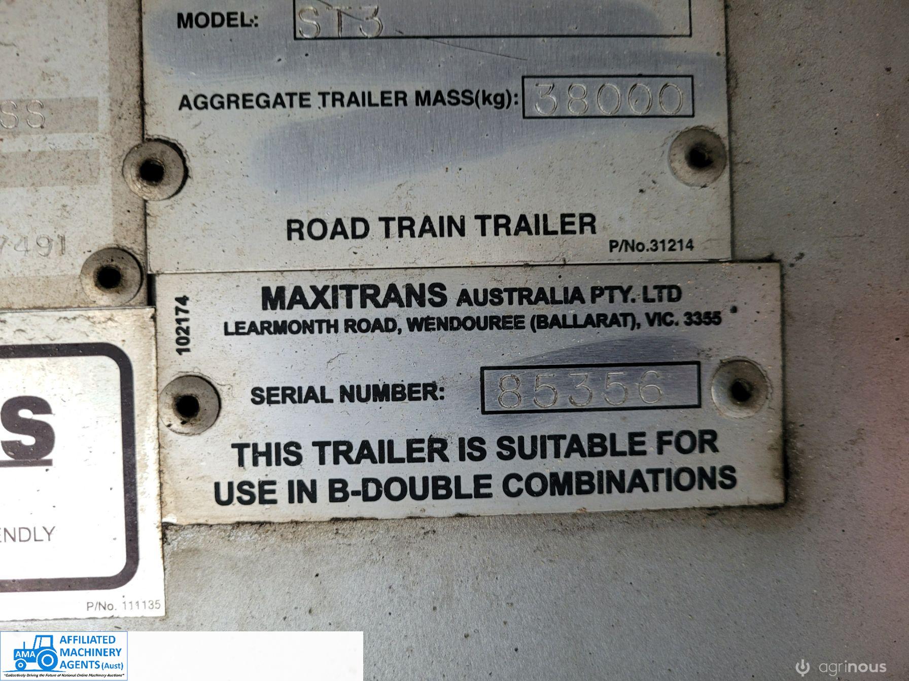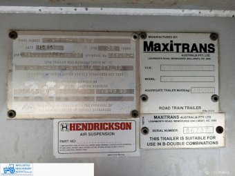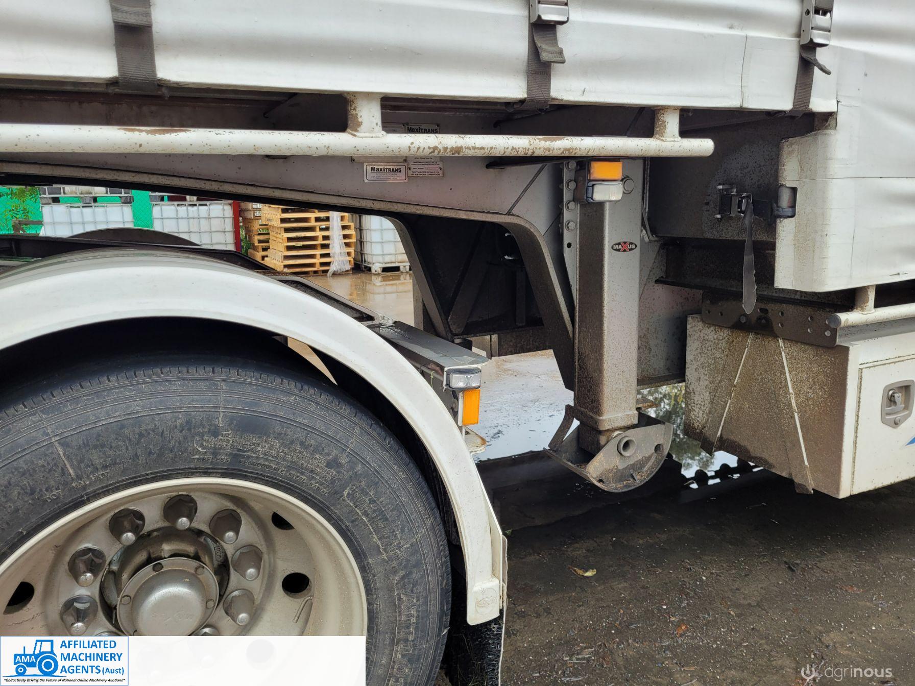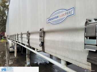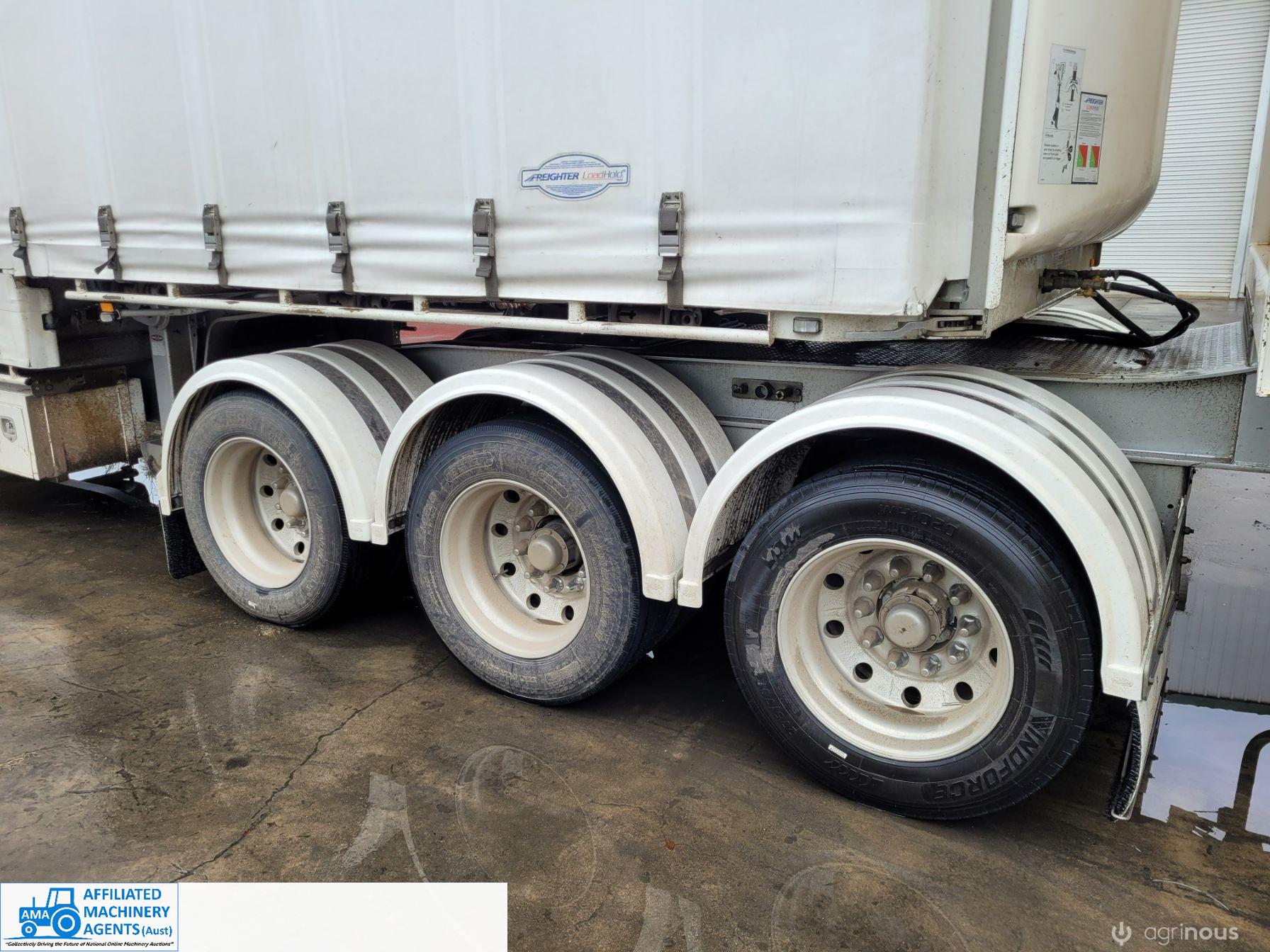 Freighter Maxi-Trans B-Double Tautliner A&B Trailers 5/13 built, one owner. 16 ply R168 radials on alloy rims. A trailer 7.5m (12 pallet) - B trailer 13.7m (22 pallet) - Overall length 21.55m. Good quality side curtains & floor. 2 spare wheels, tool boxes, good tyres. Current Vic rego (A = 4/11/22 & B = 28/12/22). Currently in use, should pass Roadworthy Inspection (Sold without RWC) - These 2 combination trailers would Suit New Buyer.