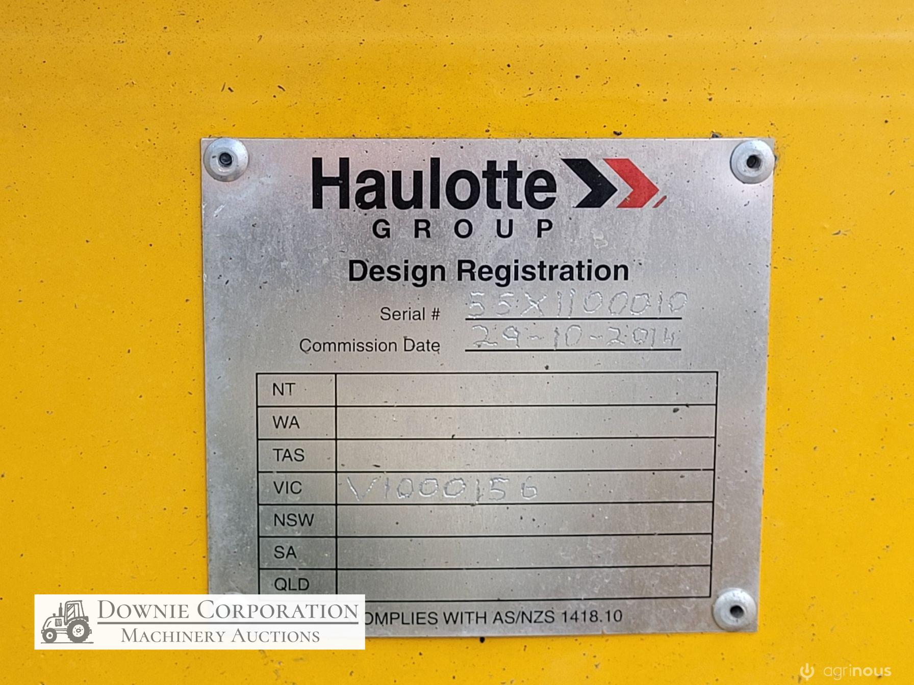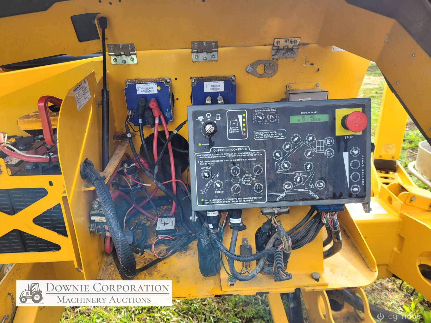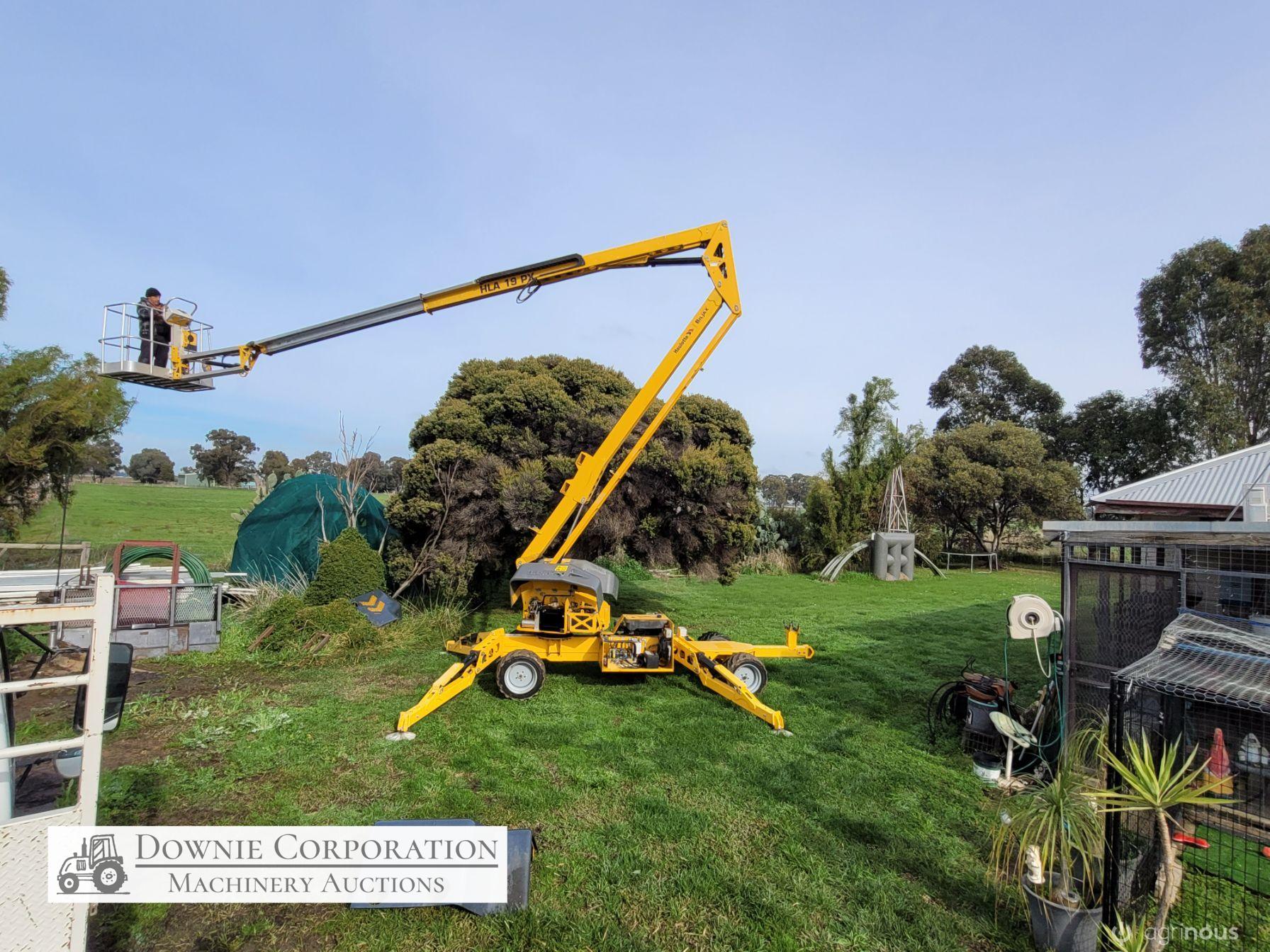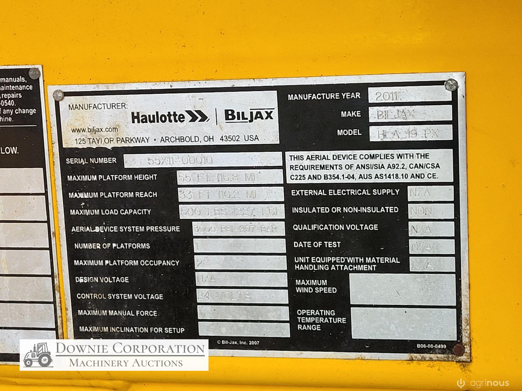 Haulotte Bil-Jax Boom Lift; Serial No. 55X1100010; 3cyl 22Hp Kubota diesel with 4 as-new Deep Cell batteries; Platform max height = 55ft (16.8m), max reach = 33ft (10.2m); Commissioned 29-10-2014, has current Vic. Certification (for safe use) V1000156; Tyres = 90%; Recently had complete service; New computer sevcom control box; New upsized (high vol) Hydraulic pump fitted.