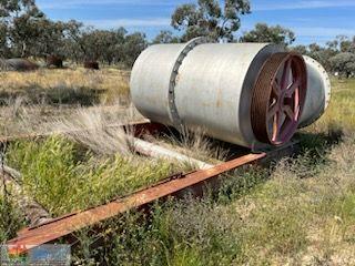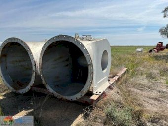 Hume Colville 48" Flood Pump ~ Ex Lake Tandou Farm ~ Fenner 4ft diameter ~ 8 run belt drive ~ On 15ft x 8'8" pump stand ~ (NB: No motor ~ No belts)