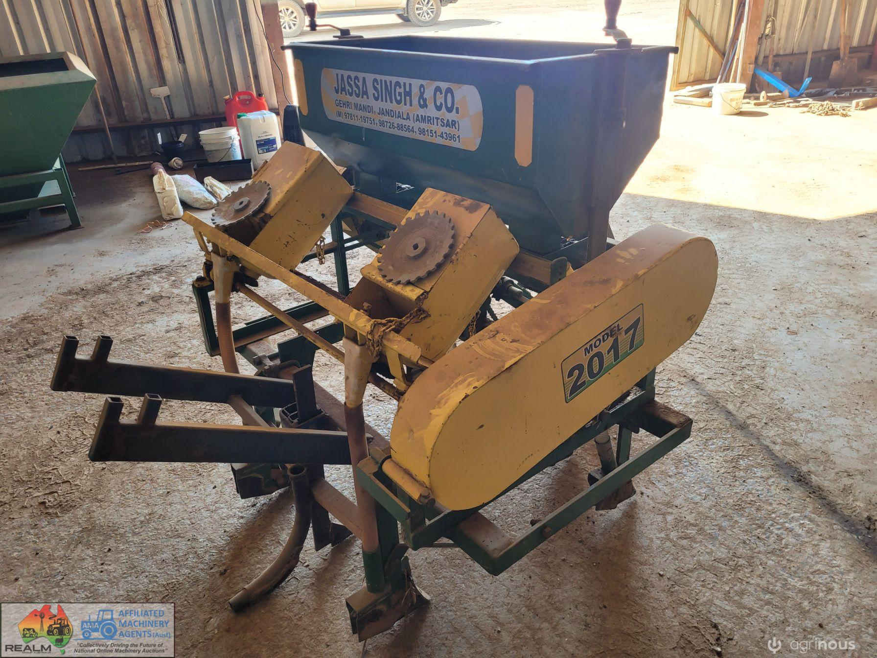 Jassa 2017 Twin Row Precision Seeder ~ Currently set-up for peas/corn at 600mm row spacing ~ 4 row fertilizer tynes for side banding ~ 7th tyne added for T-tape laying ~ 2 new seed distributor heads ~ Fully adjustable machine ~ In good working condition ~ (Cost $5k new)