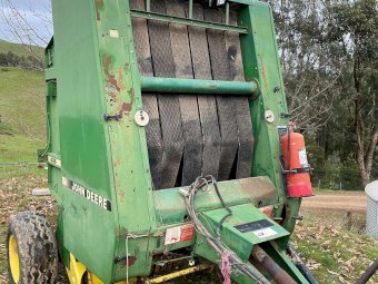 John Deere 435 Round Baler ~ plus 4 bales twine ~ (Twine Arm hydraulic pump needs servicing). ~ Payment DUE within 24 Hrs of Invoice ~ Sold as-is, prior inspection recommended. ~ NB: This item will have 10% GST added. ~ A Buyers Premium of 5% (+GST) applies to all Lots. ~ If you wish to enquire further about our listings, please Contact AMA Agent: Michael on 0458 241 242 or email michaeld@amasales.com.au