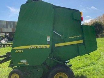 John Deere 458 Mega-wide Plus (Silage Special) Round Baler ~ Very good condition ~ Always shedded & serviced ~ Only selling due to up-grade ~ 23,143 bales ~ Located 12kms South of Mansfield (Vic) ~ Payment DUE within 24 Hrs of Invoice ~ Sold as-is, prior inspection recommended. ~ NB: This item will have 10% GST added. ~ A Buyers Premium of 5% (+GST) applies to all Lots. ~ If you wish to enquire further about our listings, please