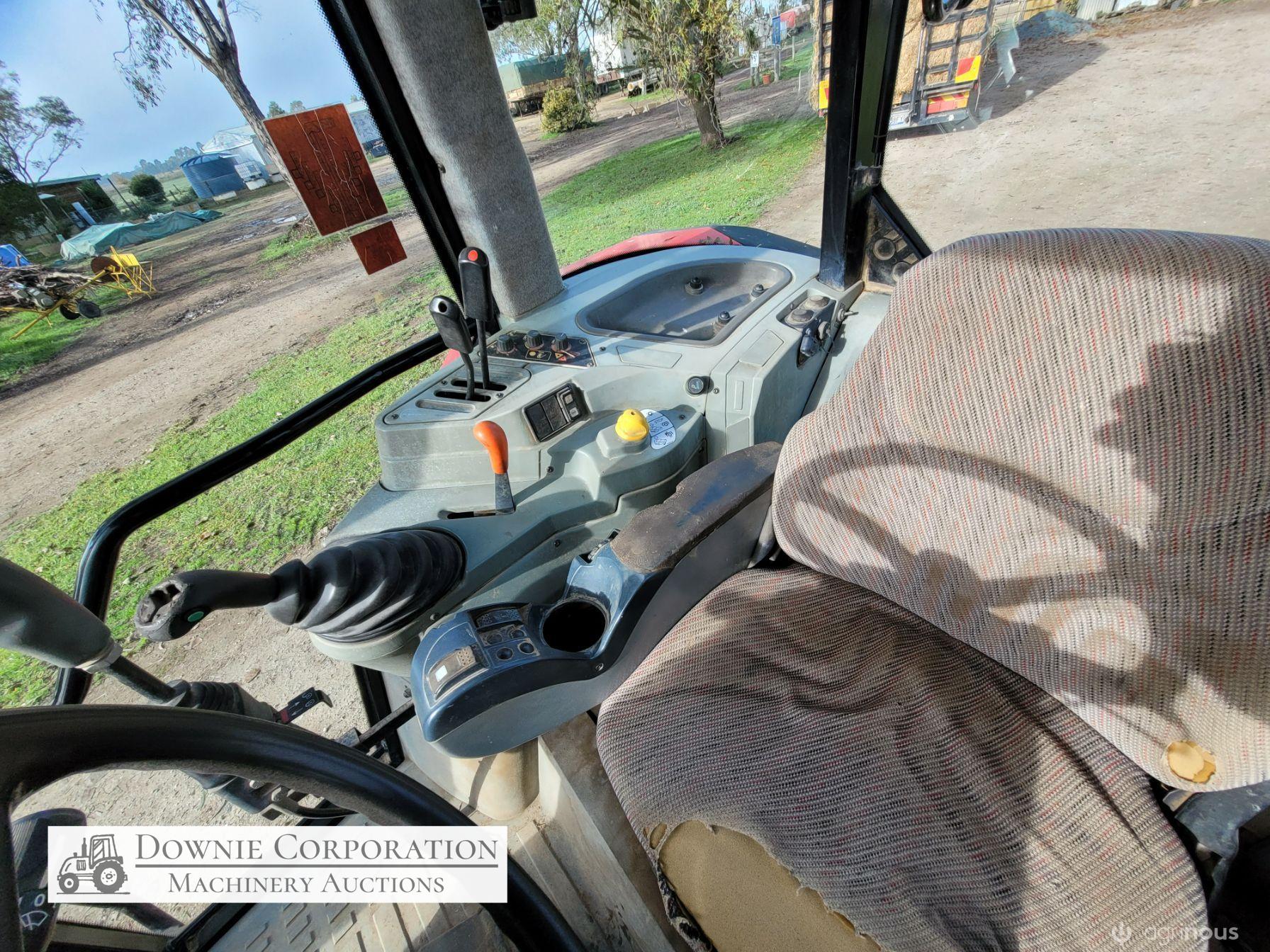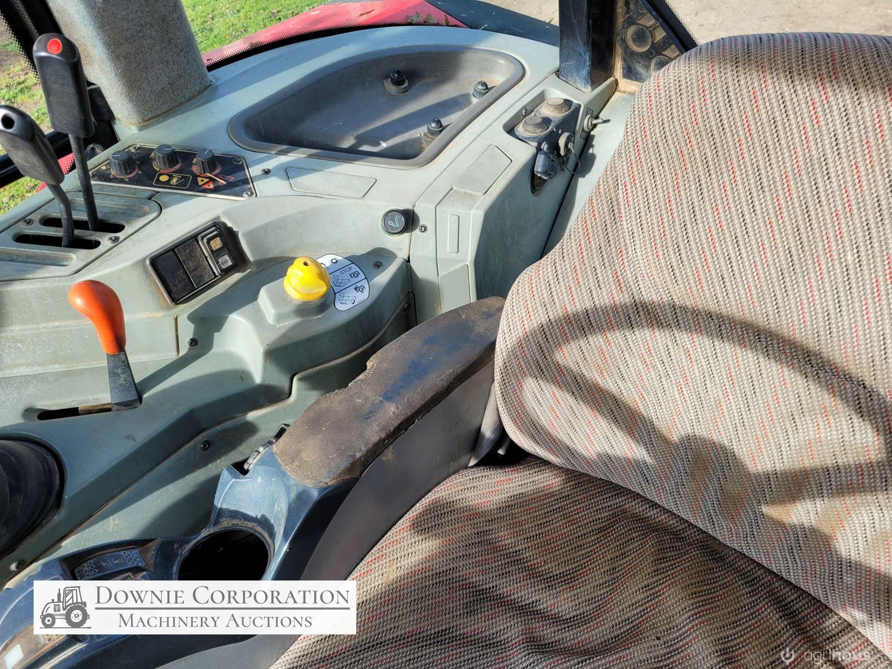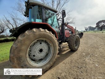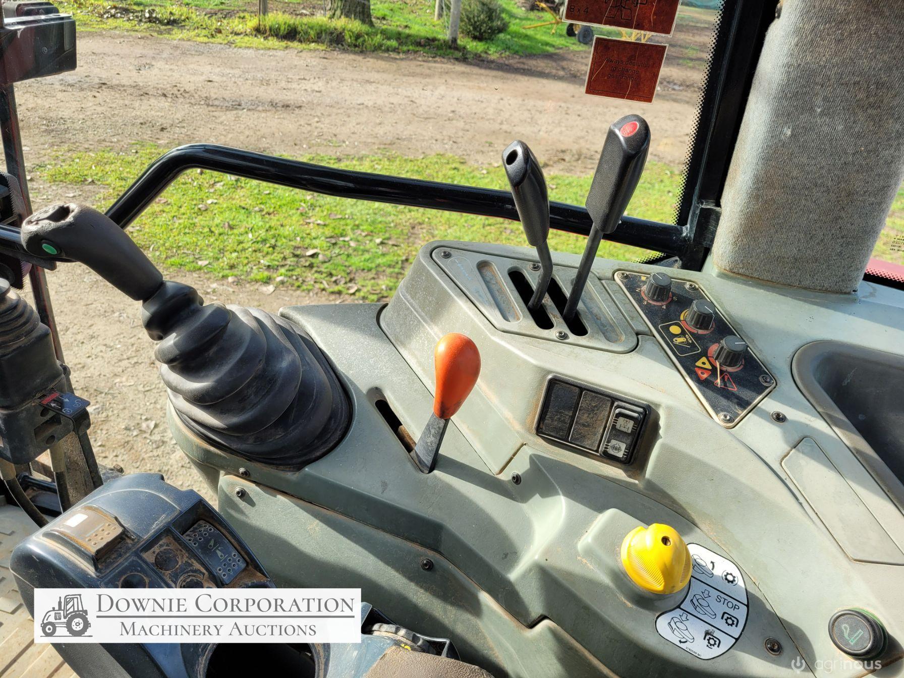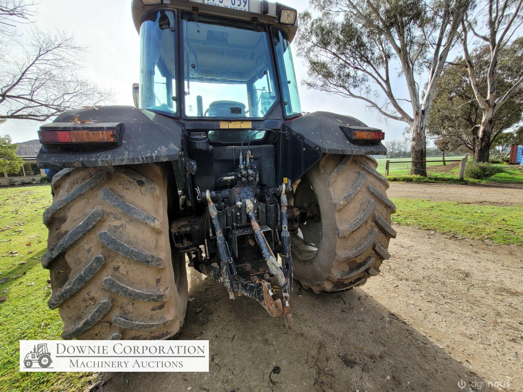 2007, MF 6290 FWA 120Hp Tractor with Burder 9050XP FEL forks only (no bucket); 6cyl diesel engine showing 9,231 Hrs. 32sp power shift transmission; A/c cab (works but may need re-gas); 3pl; Dual remotes; Tyres F=90% R=40%.