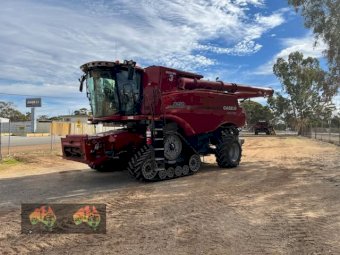 Caseih 8250 on Tracks, c/w D140 Macdon Draper, new Camso 3500 2.5 suspended tracks, 40blade fine cut chopper & in-cab controlled spreaders, Rocktrap, AFS Harvest command, Pro700 display, Nav2 & 372 receiver, camera kit, power grain tank cover, upper cross auger, comb trailer, only 1250 rotor hrs, v/ good condition, stk no 502787, machine will be crop ready on completion of w/shop service