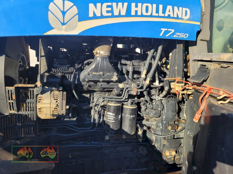 New Holland T7-250 FWA Tractor ~ 250Hp ~ 6.7Ltr, 6cyl Turbo diesel engine ~ 8,579 Hrs ~ Full GPS Auto steer ~ 4x Remotes ~ 3pl ~ PTO ~ A/c cab ~ Currently fitted with purpose built Row-crop rims & Radial tyres F=85R34, R=90R50 ~ These tyres are 85% tread ~ (NB: Original rims & tyres included F=70R30, R=70R42) ~ 5% Buyers Premium & GST will be added to sale price ~ Contact Contact Robbie Mckenzie 0413 700 988
