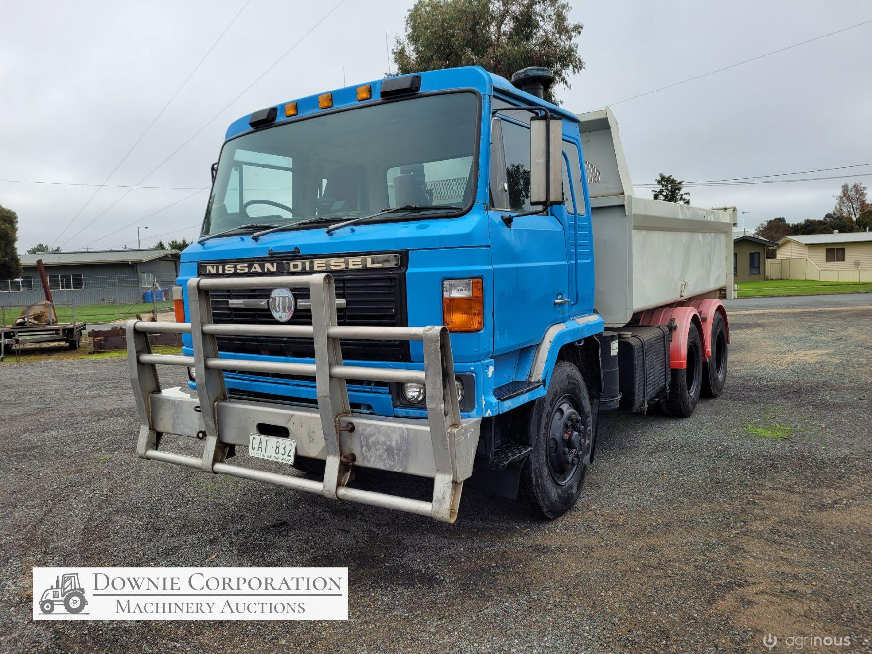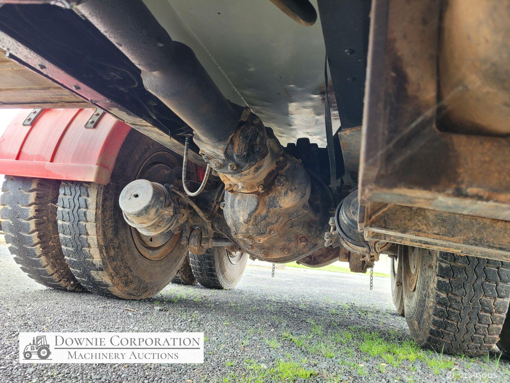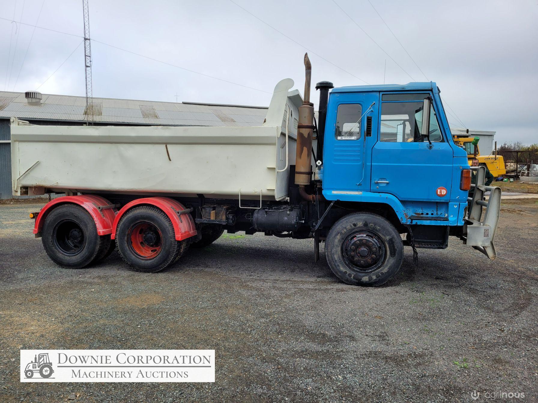 Nissan UD Bogie Tipper, with 14ft solid gravel body. 285Hp turbo 6cyl diesel engine & 15 speed road ranger gearbox, heavy duty diffs & suspension. Engine was reco 15 years ago, but only had minimal use since. Speedo reads 458,327 Kms. Has an Extra-Cab (sleeper), good lights, brakes etc. Air operated PTO hydraulics & tailgate. Alloy bull bar. 10.00R20 Tyres. A good sold well looked after unit. Sold un-reg, but may be suitable for re-registering or a good quarry/station truck.