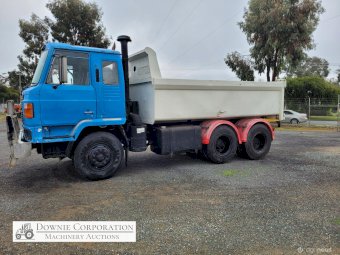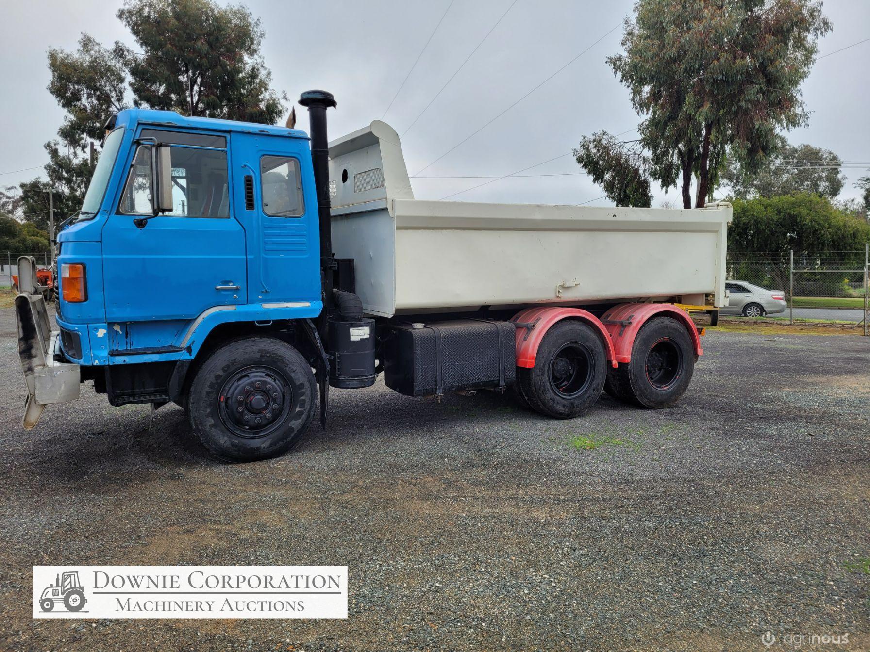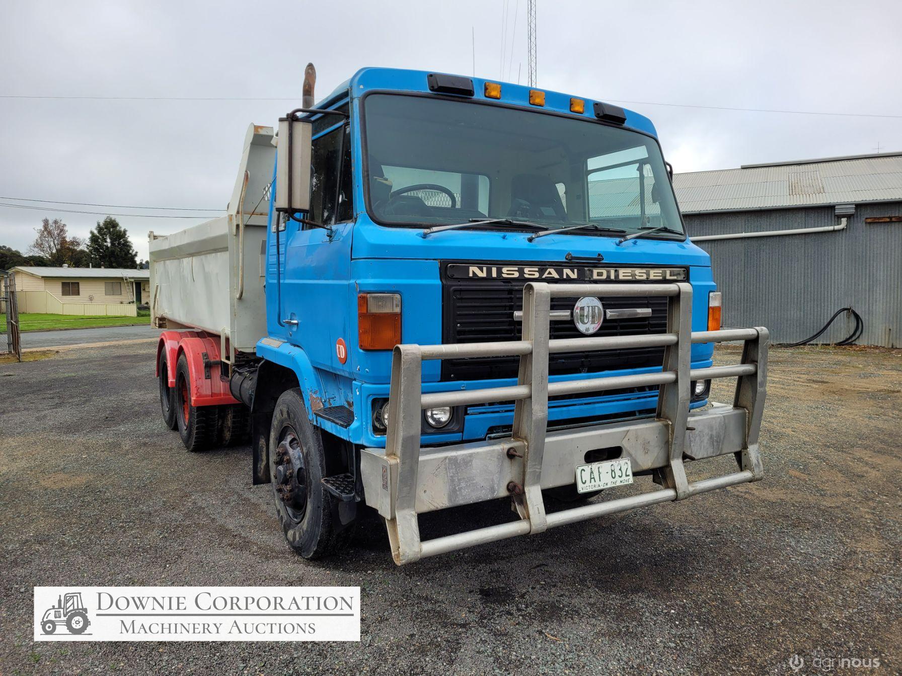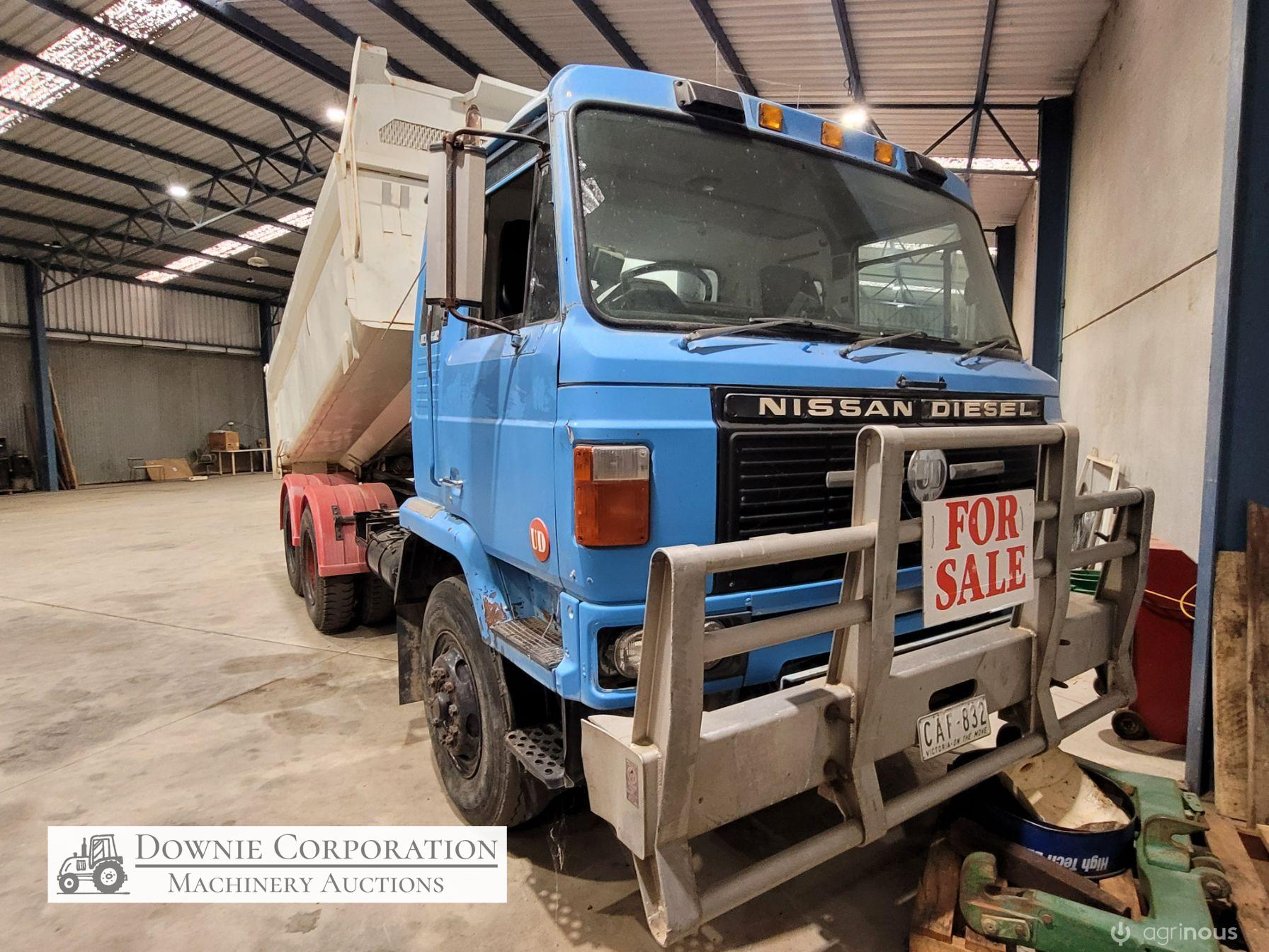Nissan UD Bogie Tipper, with 14ft solid gravel body. 285Hp turbo 6cyl diesel engine & 15 speed road ranger gearbox, heavy duty diffs & suspension. Engine was reco 15 years ago, but only had minimal use since. Speedo reads 458,327 Kms. Has an Extra-Cab (sleeper), good lights, brakes etc. Air operated PTO hydraulics & tailgate. Alloy bull bar. 10.00R20 Tyres. A good sold well looked after unit. Sold un-reg, but may be suitable for re-registering or a good quarry/station truck.