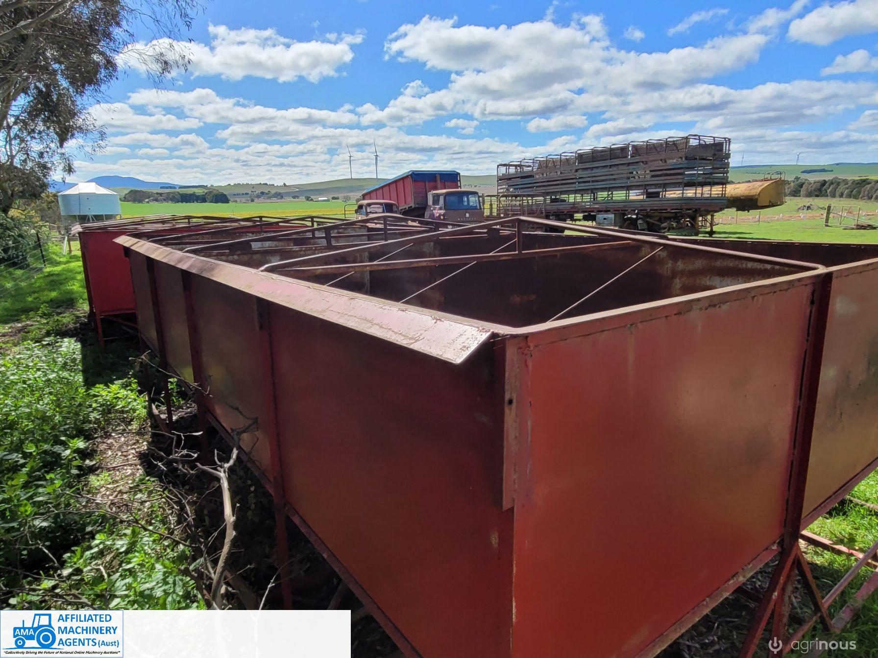 Pair of Grain Bins to suit 32' flat top trailer - Centre dump, in good condition - Roll over tarp.