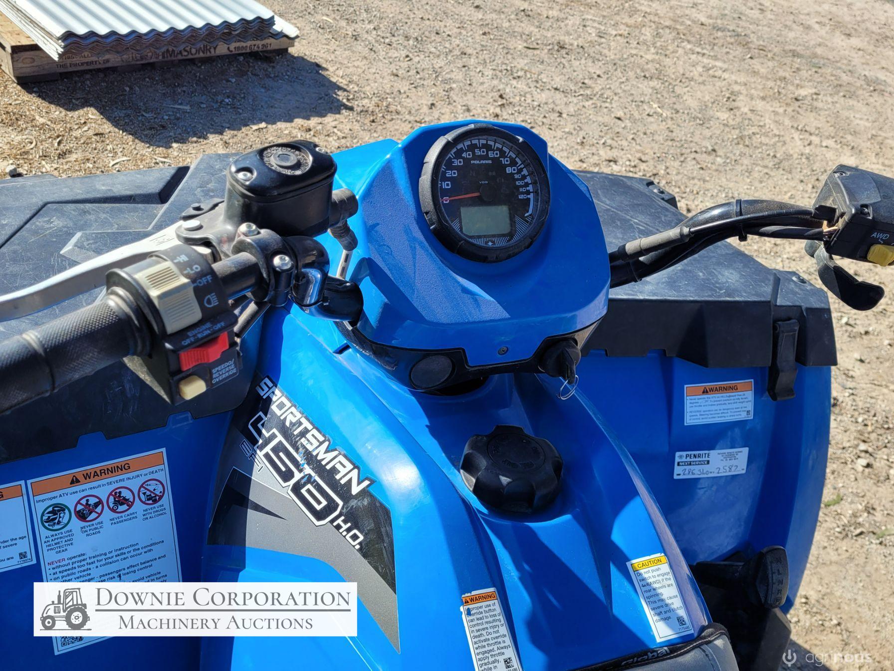 2017 Polaris Sportsman 450cc EFI 4x4 ATV; 288.5 Hrs; 2,311 Kms; Tyres 90%, due for its 2nd service, As-new condition, one owner, Suit new buyer. (only selling due to not enough usage)