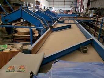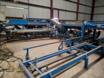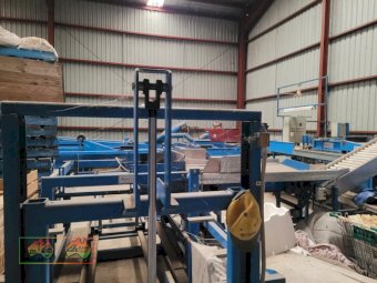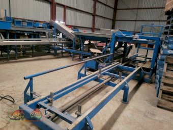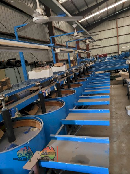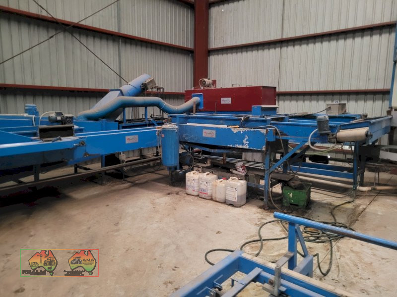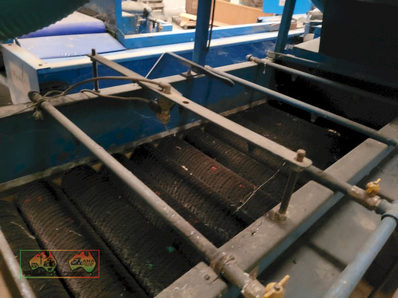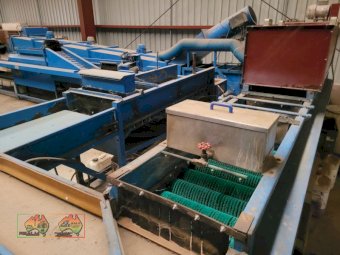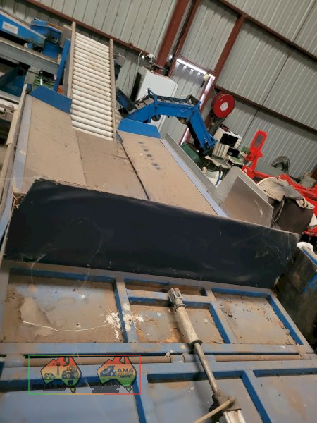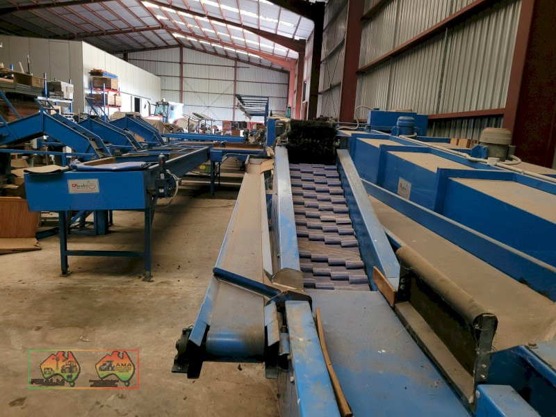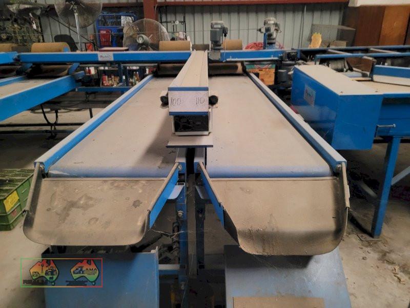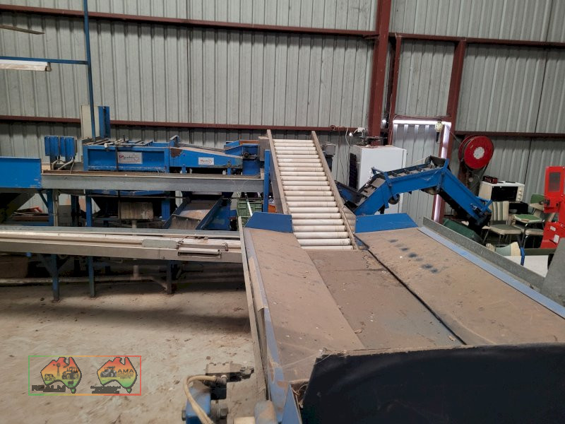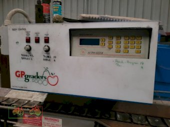 Single Row Pomme Fruit Grader ~ Manufactured & installed by GP Graders ~ A complete system from Bin Tipper & Stacker, to wash, scrub, dry & waxing ~ Computerized sorter based on fruit weight ~ Label station ~ Numerous pack-out stations ~ This is a complete functioning system, well serviced & in good operating condition.