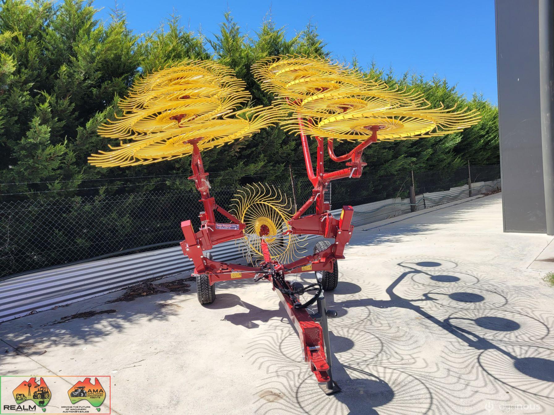 Sitrex Vee-10 Trailing Hay Rake, with Splitter ~ New (Un-used) ~ Shop soiled condition (sun faded) ~ Suit NEW BUYER