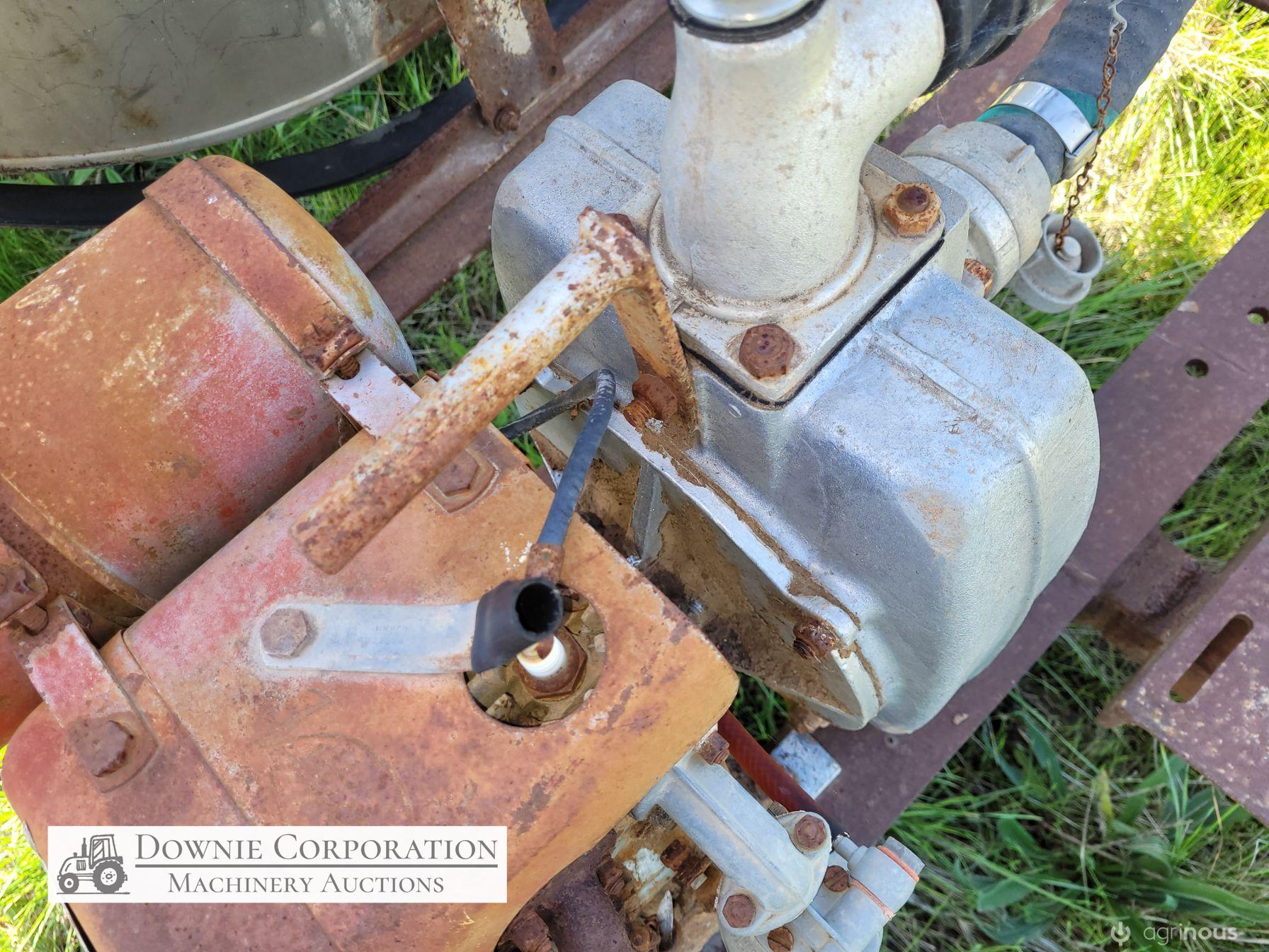 Stainless 1,000 Ltr Water Tank on single axle trailer/frame; no leaks; Villiers motor on pump currently not going; suction & fire fighter hoses included.