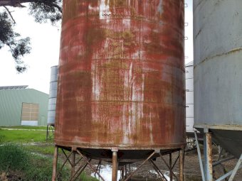 Silo ~ Solid Steel construction, no internal rust or damage, shallow cone. 3.5m round & body 4.8m (total length unknown) - Approx 53 cubic metre capacity. ~ (NB: 5% Buyers Premium + GST will be added to sale price of all Lots sold) ~ Contact AMA Agent: Michael Downie 0458 241 242