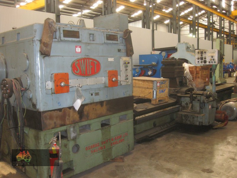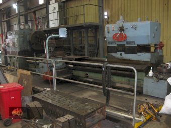 1600mm swing x 4.7m between centres with heavy-duty tail stock, we updated electrics, and three shear bed ways have fixed steady but need a packer, 44 tonnes dismantled