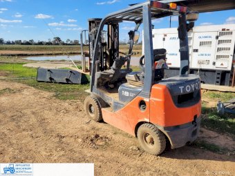 Toyota 1.8 ton Diesel Forklift 62-8FD18 ~ Near new condition ~ Only 327.7 Hrs ~ Always shedded ~ Pneumatic tyres, suit outdoor use ~ Excellent working condition ~ Suit NEW BUYER